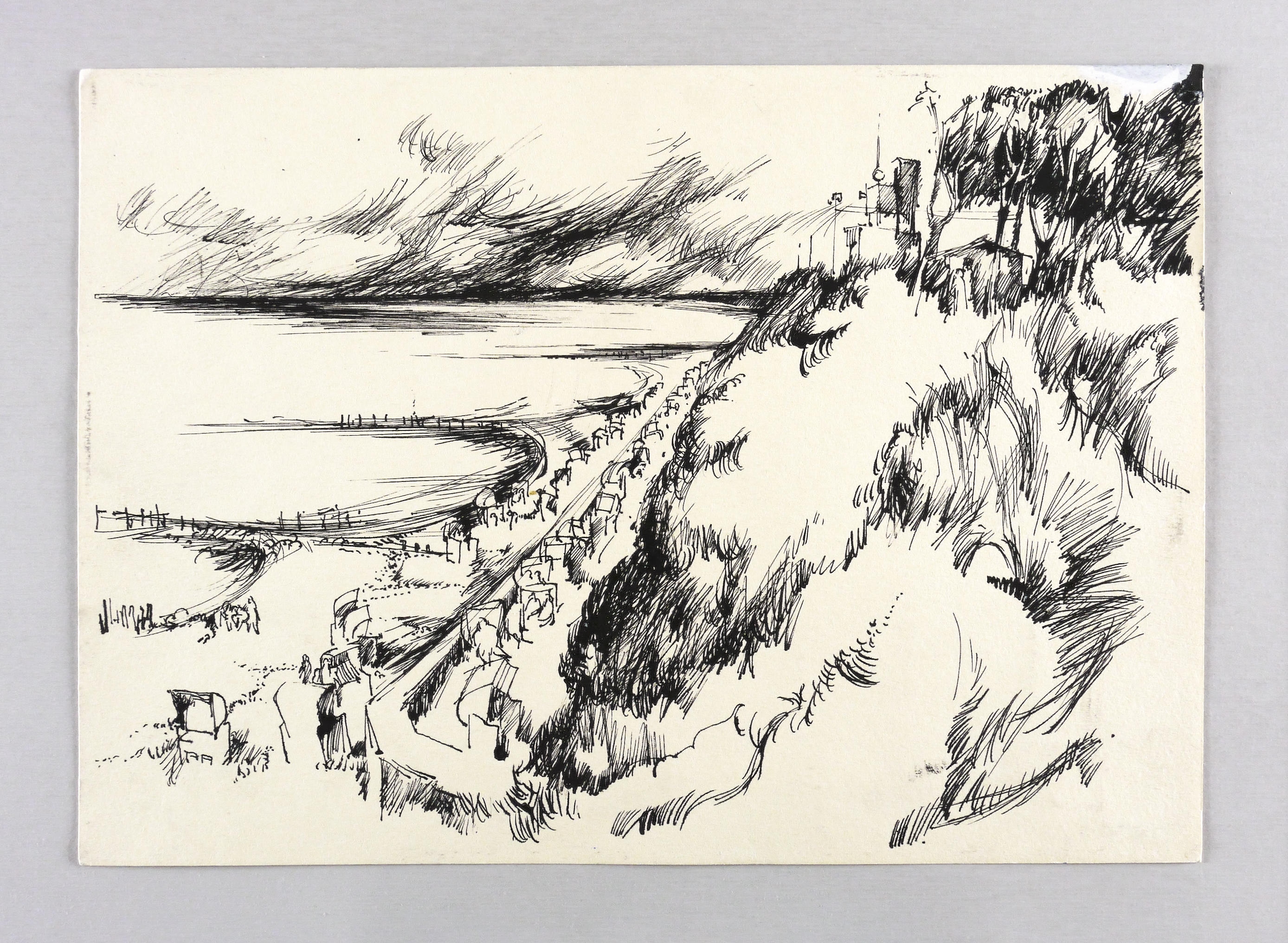 Nicht handsigniert. Verso in Bleistift ausführlich bezeichnet: ″Glowe/Rügen / Feder, schwarz / 1968, 30,0 x 40,0 cm″. Nachlass-Stempel. – Rückseite mit Montageresten. Guter Zustand.