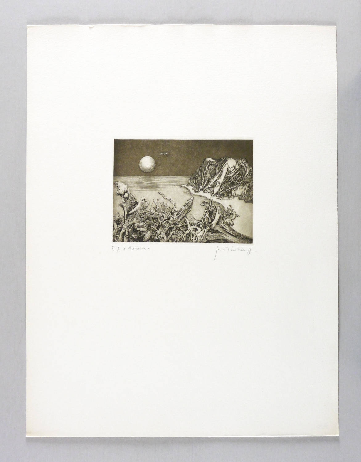 1977. Radierung / Aquatinta, Strichätzung & Kaltnadel, in Schwarz, auf hellchamois Weißenborn. – Originale Künstlergrafik, von Gerenot Richter. – Künstlerexemplar (e.a.). – 12,7 x 17,2 cm (Darstellung / Platte), 51 x 39 cm (Blatt).