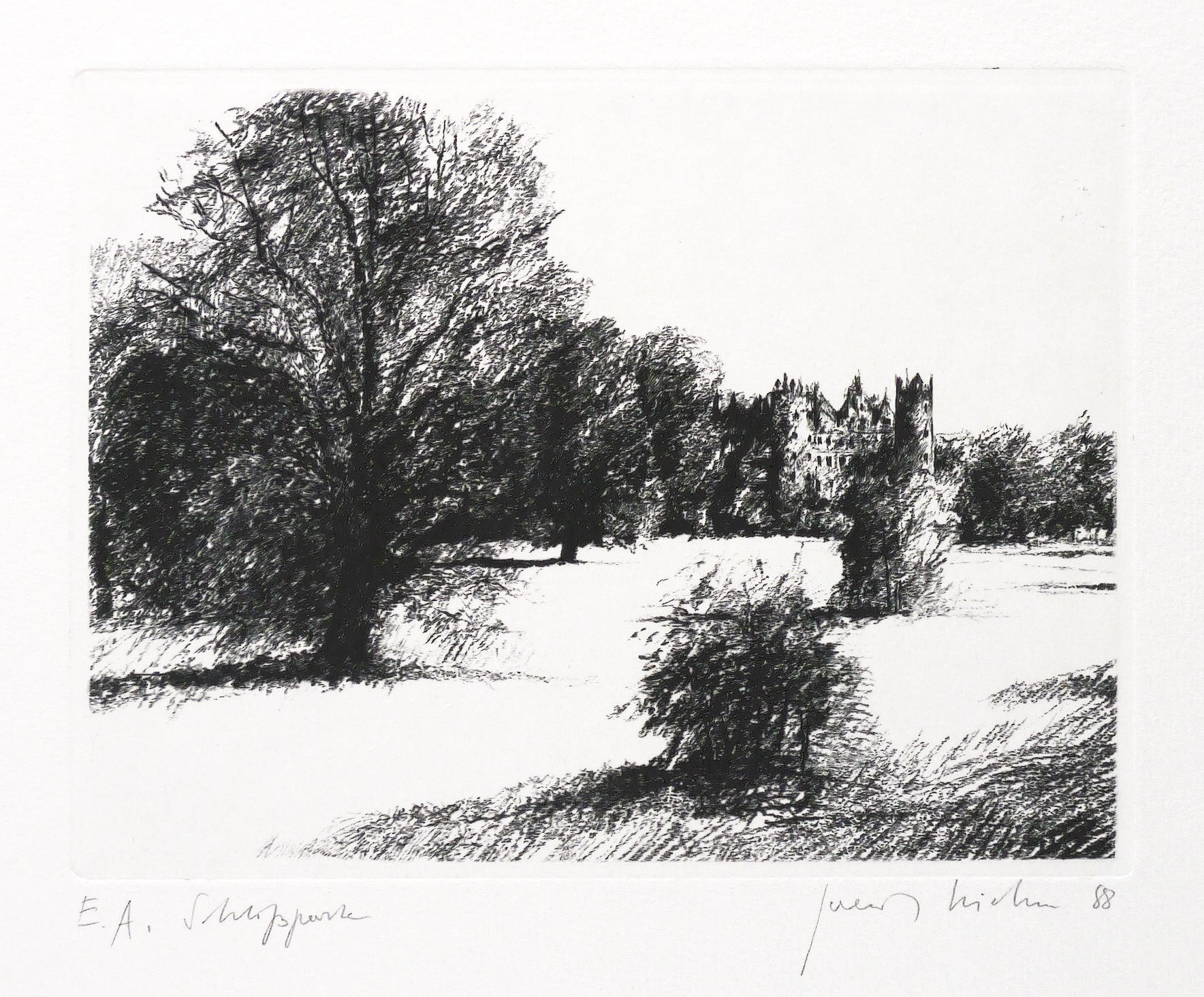 WVZ II-296. – Rechts unten in Bleistift signiert und datiert: ″Gerenot Richter 88″. Links Auflagenbezeichnung und Titel: ″E.A. Schloßpark″. Verso bezeichnet. Nachlass-Stempel des Künstlers. – Ohne Mängel. Sehr guter Zustand.