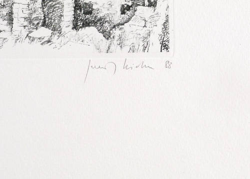WVZ II-297. – Rechts unten in Bleistift signiert und datiert: ″Gerenot Richter 88″. Links Auflagenbezeichnung und Titel: ″E.A. Verlassenes Gehöft″. Verso bezeichnet. Nachlass-Stempel des Künstlers. – Ohne Mängel. Sehr guter Zustand.