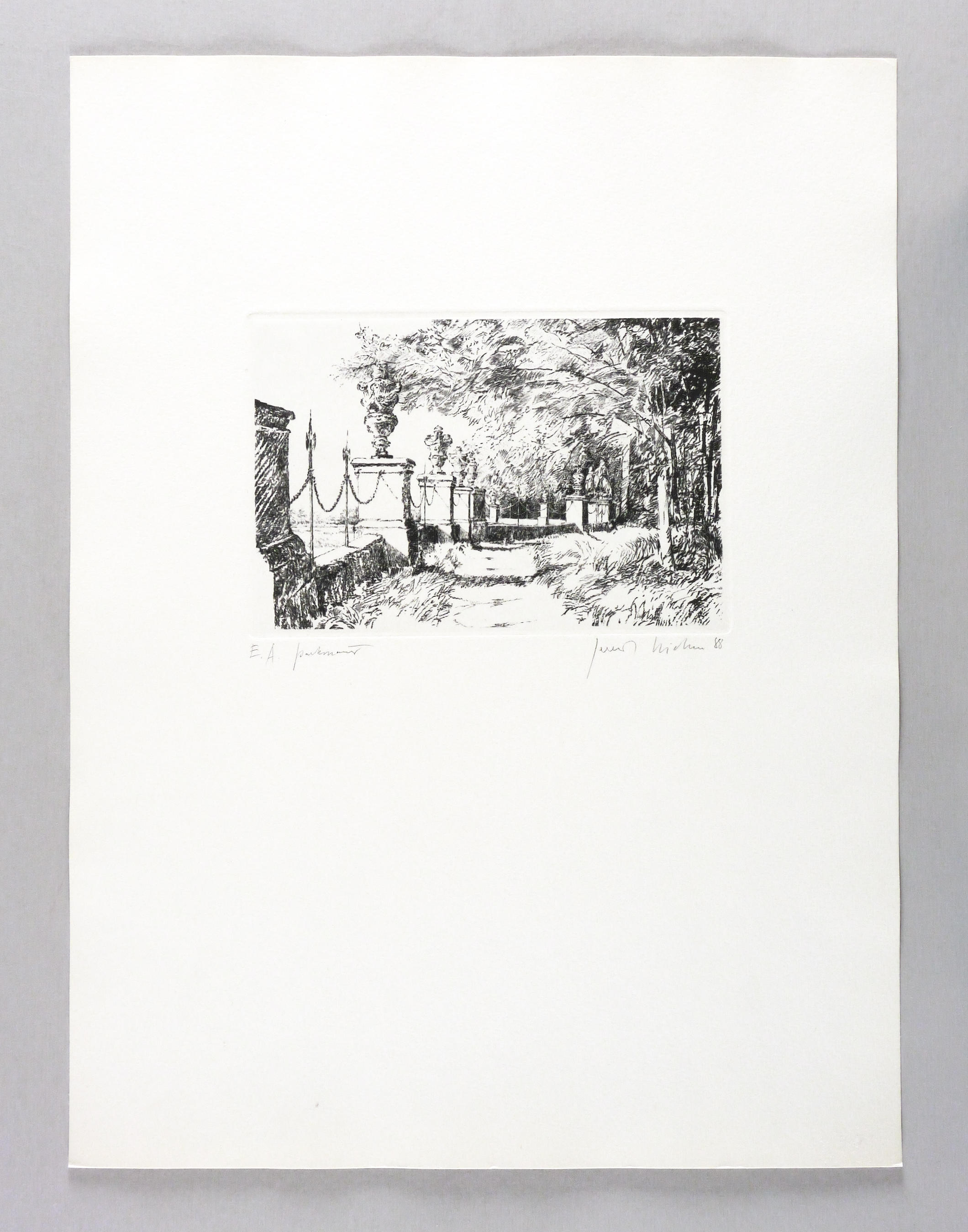 1988. Radierung / Kaltnadel, in Schwarz, auf hellem Weißenborn. – Originale Künstlergrafik, von Gerenot Richter. – Künstlerexemplar (e.a.). – 14,5 x 21,4 cm (Darstellung / Druckbild), 50 x 38 cm (Blatt).