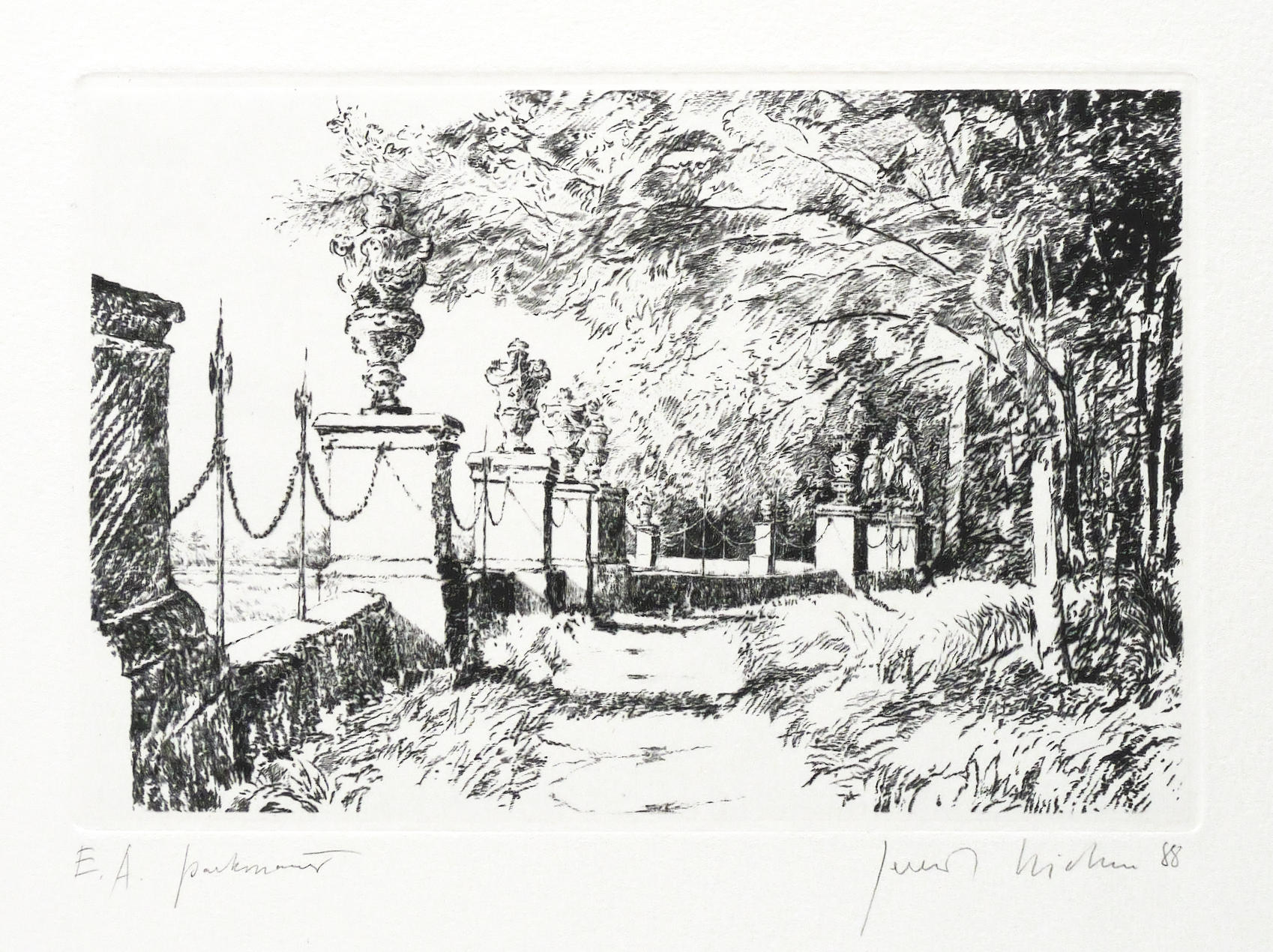 WVZ II-294. – Rechts unten in Bleistift signiert und datiert: ″Gerenot Richter 88″. Links Auflagenbezeichnung und Titel: ″E.A. Parkmauer″. Verso bezeichnet. Nachlass-Stempel des Künstlers. – Ohne Mängel. Sehr guter Zustand.