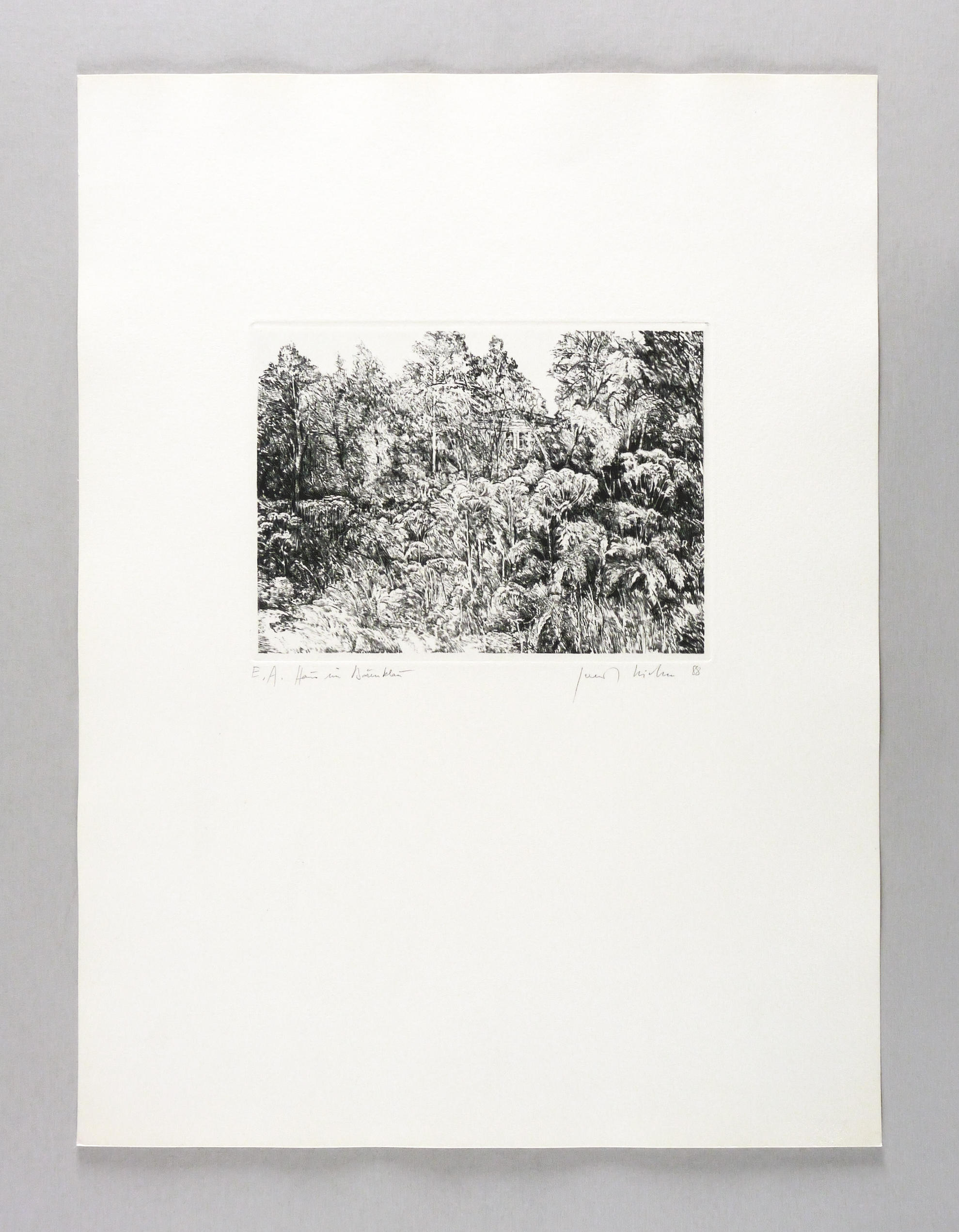 1988. Radierung / Kaltnadel, in Schwarz, auf hellem Weißenborn. – Originale Künstlergrafik, von Gerenot Richter. – Künstlerexemplar (e.a.). – 15,8 x 21,3 cm (Darstellung / Druckbild), 50 x 38 cm (Blatt).