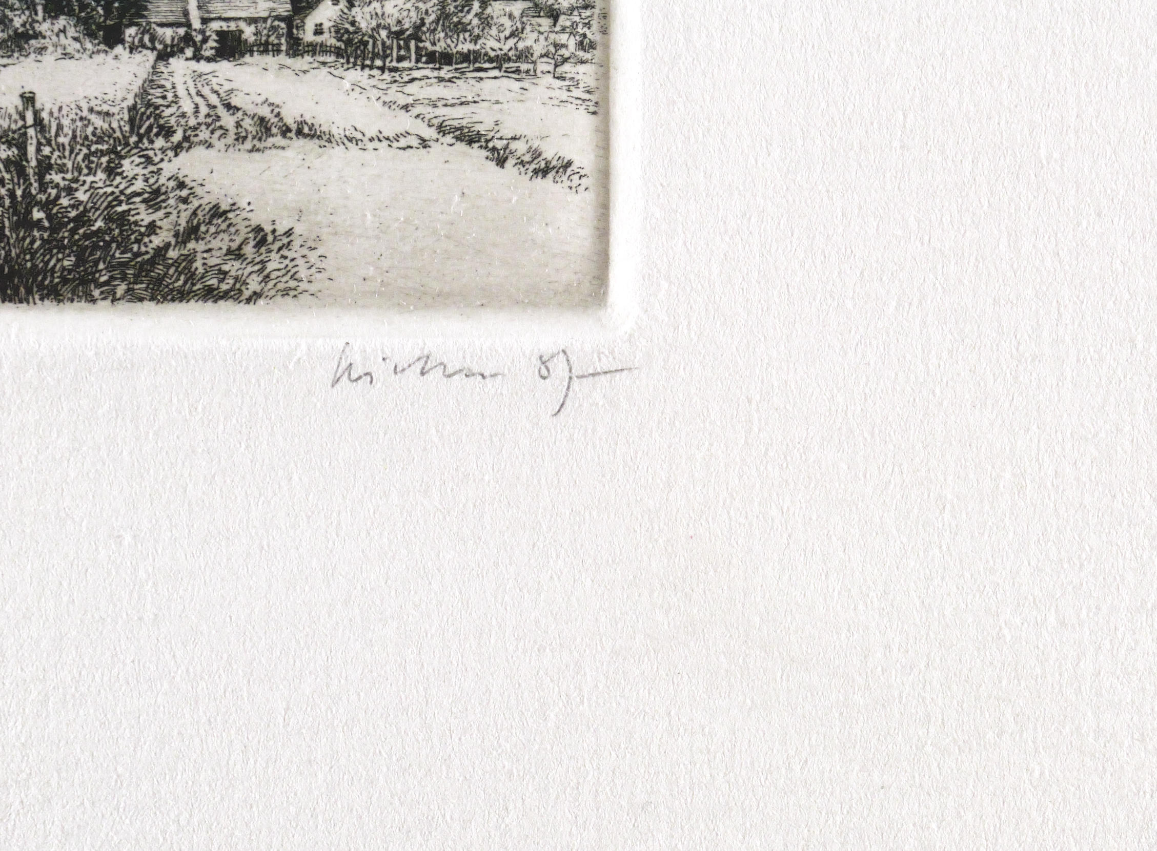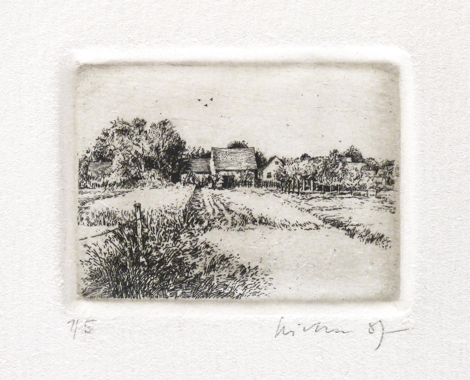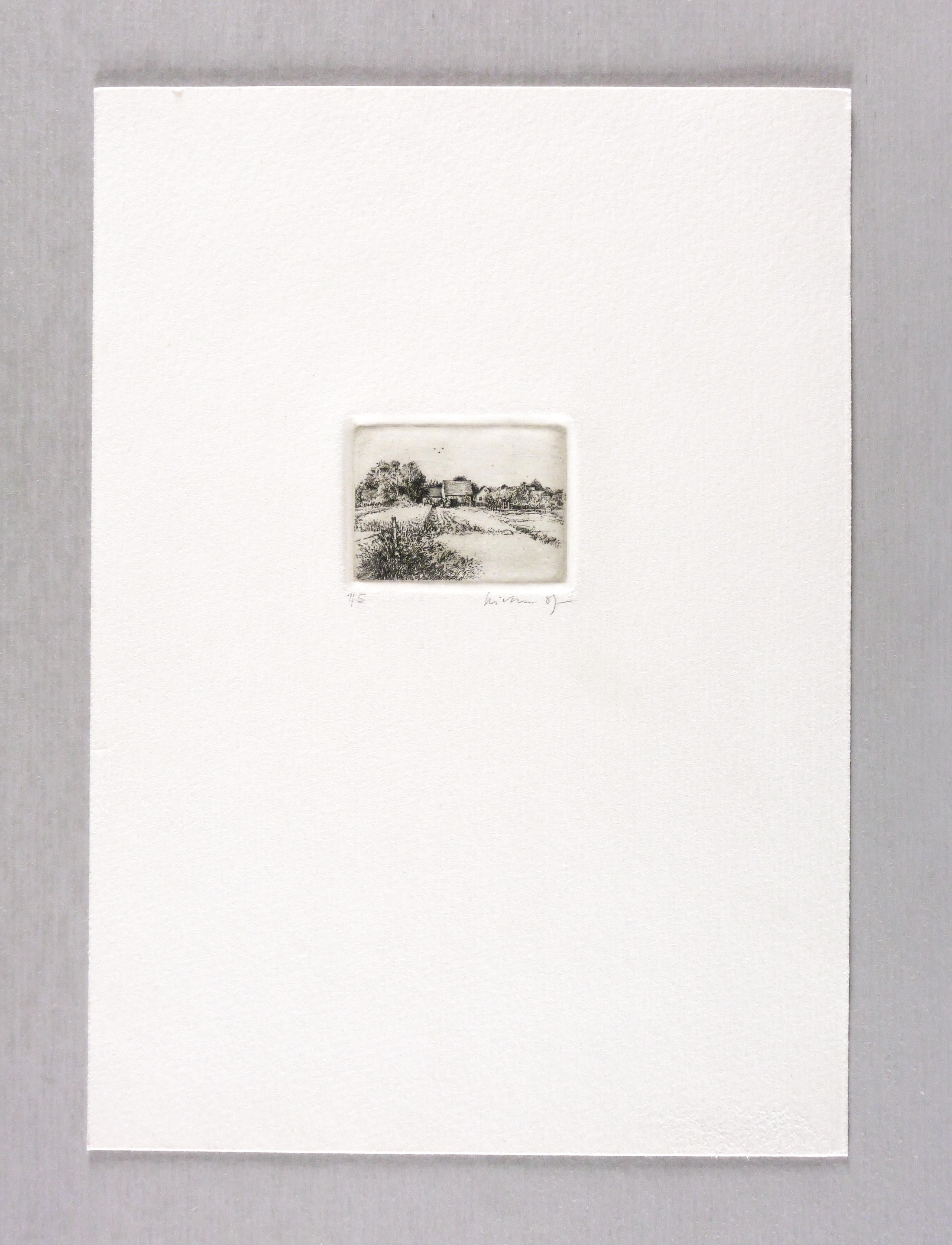 1987. Radierung / Strichätzung, in Schwarz, auf hellchamois Hahnemühle. – Originale Künstlergrafik, von Gerenot Richter. – Auflage Exemplar Nr. 1/5. – 4,0 x 5,0 cm (Darstellung / Platte), 24 x 17 cm (Blatt).