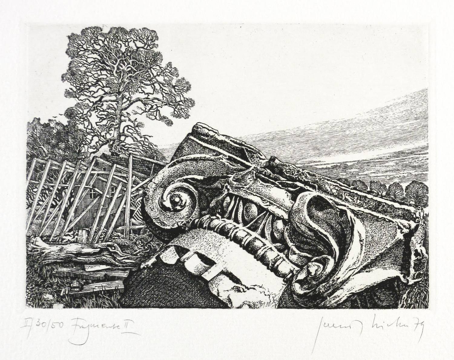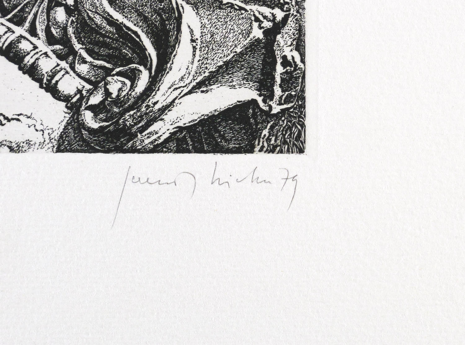 1979. Radierung / Strichätzung, in Schwarz, auf hartem hellchamois Weißenborn. – Originale Künstlergrafik, von Gerenot Richter. – Auflage Exemplar Nr. 30/50. – 12,4 x 17,8 cm (Darstellung / Platte), 30 x 40 cm (Blatt).