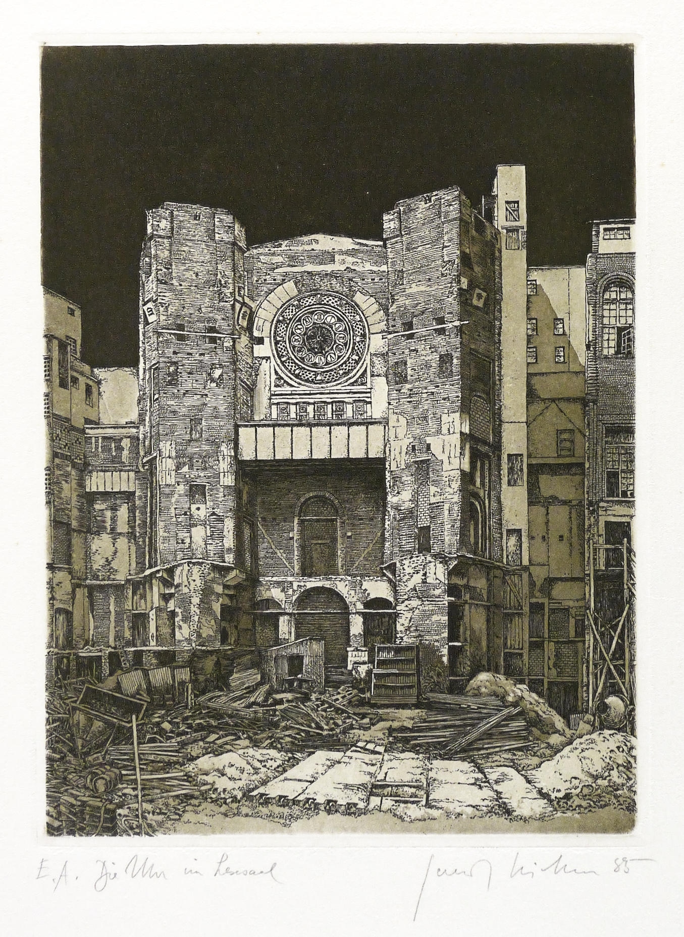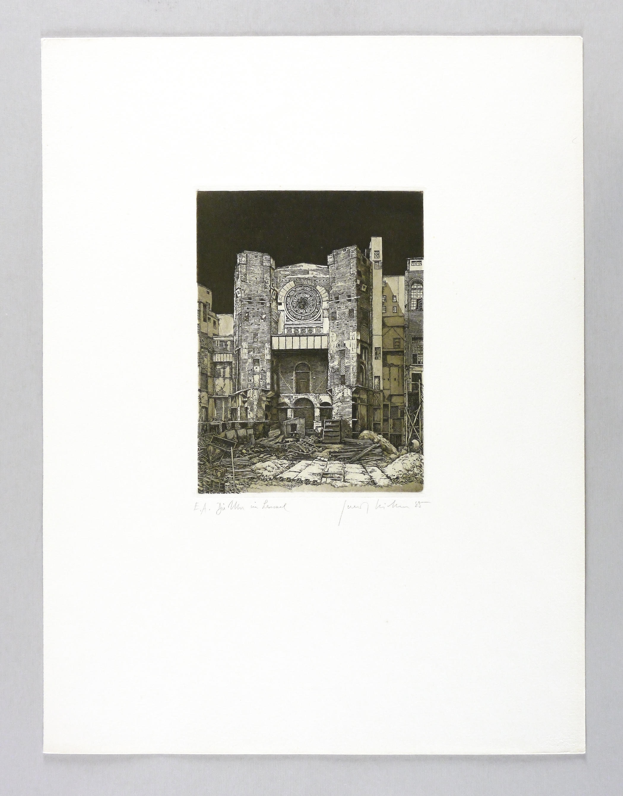 1985. Radierung / Aquatinta & Strichätzung, in Schwarz, auf weichem hellchamois Weißenborn. – Originale Künstlergrafik, von Gerenot Richter. – Künstlerexemplar (e.a.). – 21,6 x 16,3 cm (Platte), 50 x 38 cm (Blatt), 21,0 x 15,7 cm (Darstellung / Druckbild).