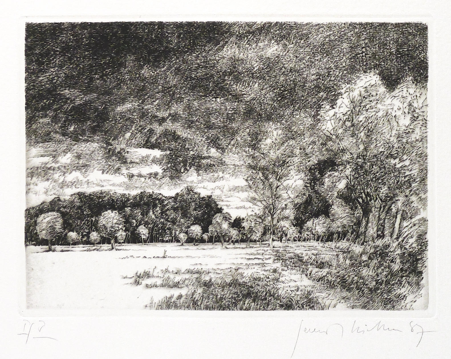 1987. Radierung / Kaltnadel, in Schwarz, auf hellchamois Weißenborn. – Originale Künstlergrafik, von Gerenot Richter. – Auflage Exemplar Nr. I/V. – 14,4 x 20,0 cm (Darstellung / Druckbild), 50 x 38 cm (Blatt).