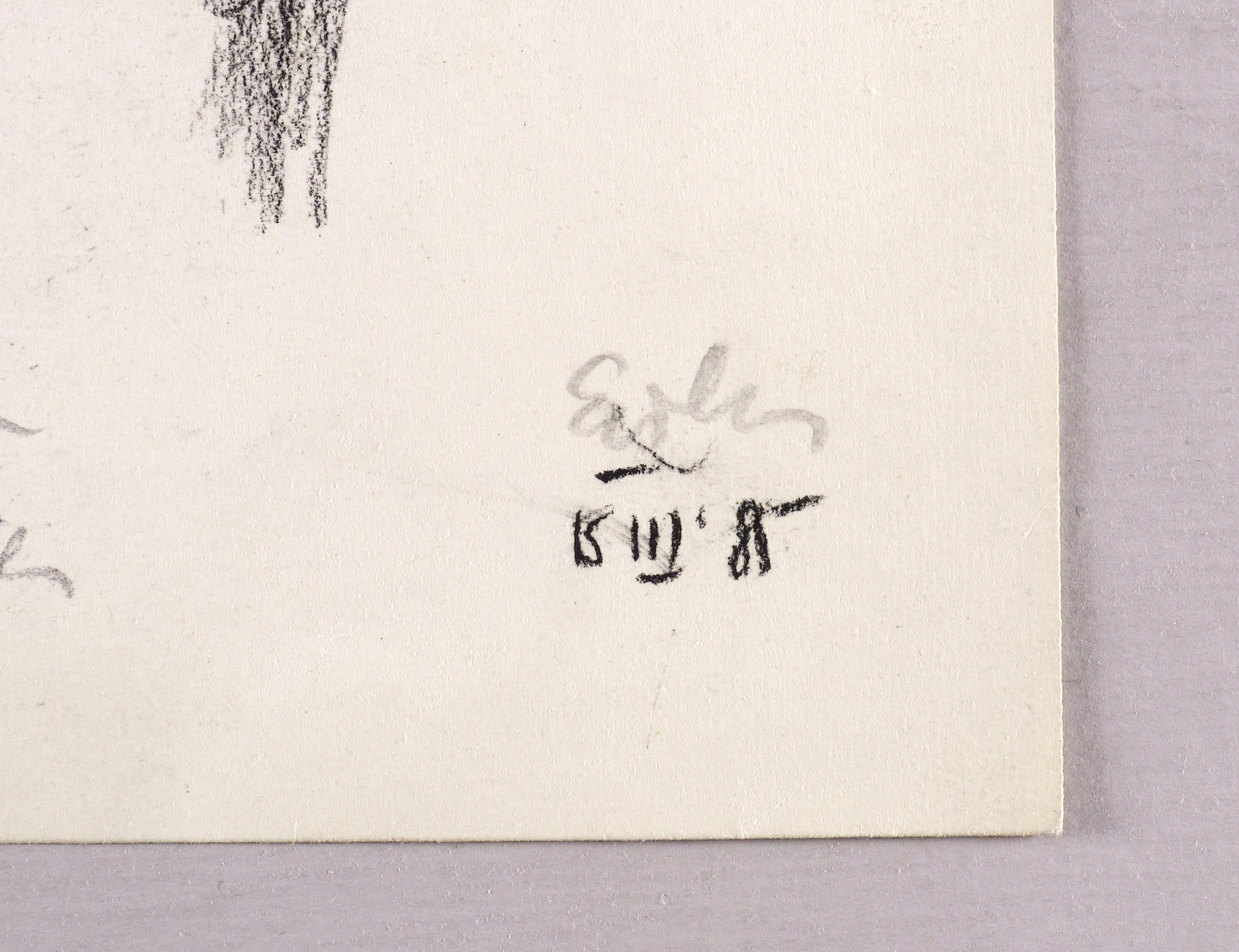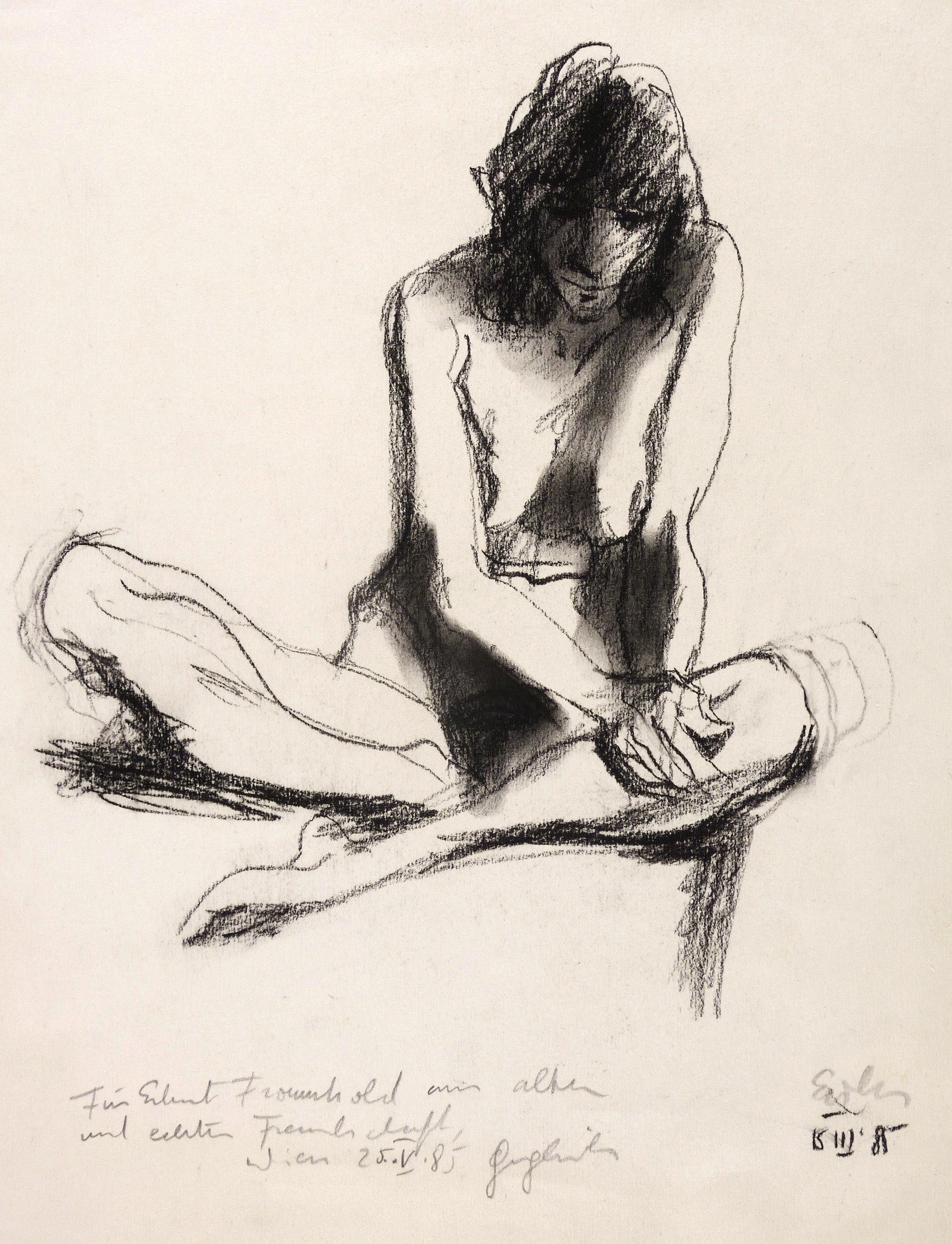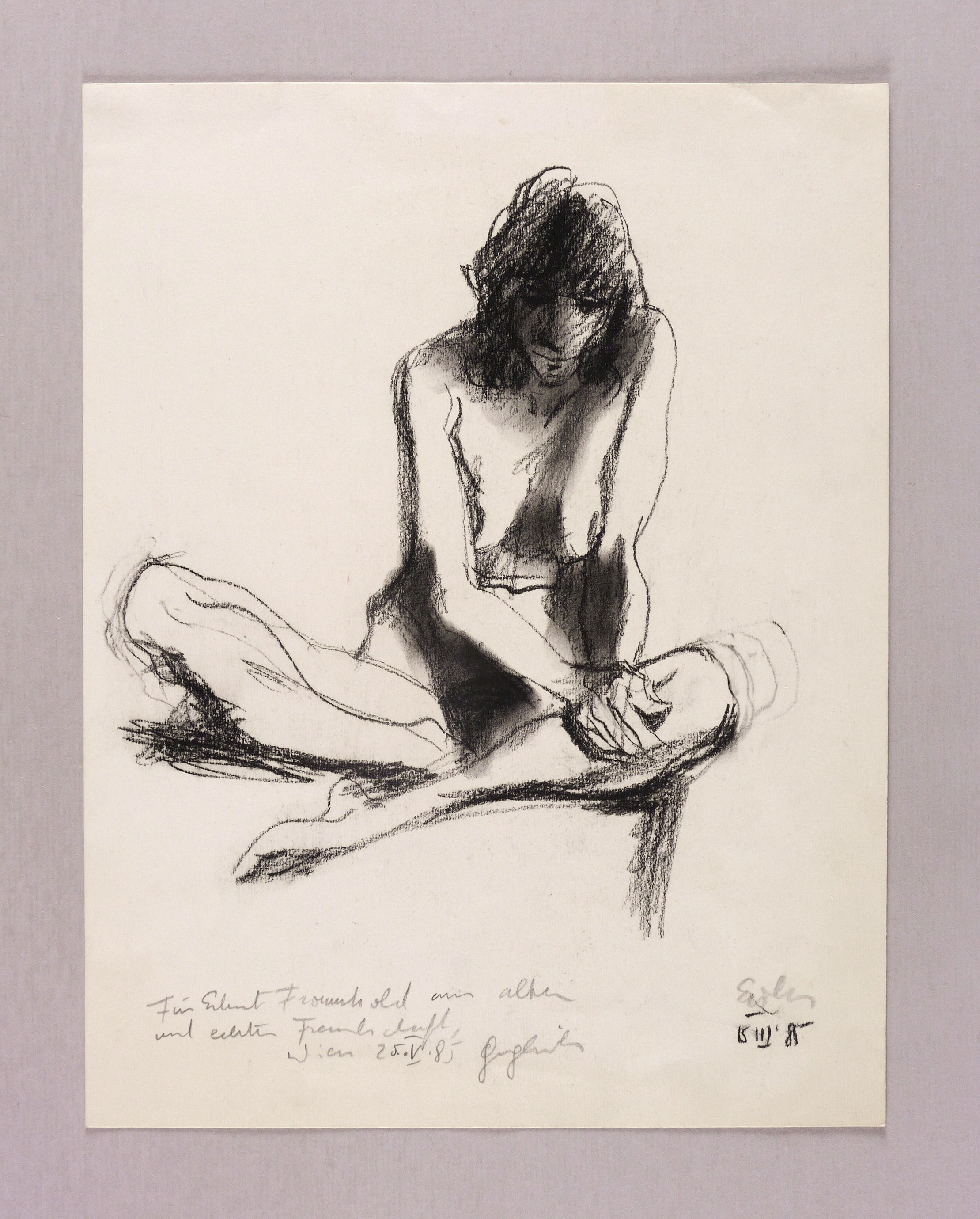 Rechts unten in Bleistift signiert: ″Eisler″. Dazu in Kreide datiert: ″15 III. 85″. Links unten Widmung: ″Für Erhard Frommhold aus alter und echter Freundschaft, Wien 20. V. 85 Georg Eisler″. – Sehr guter Zustand.
