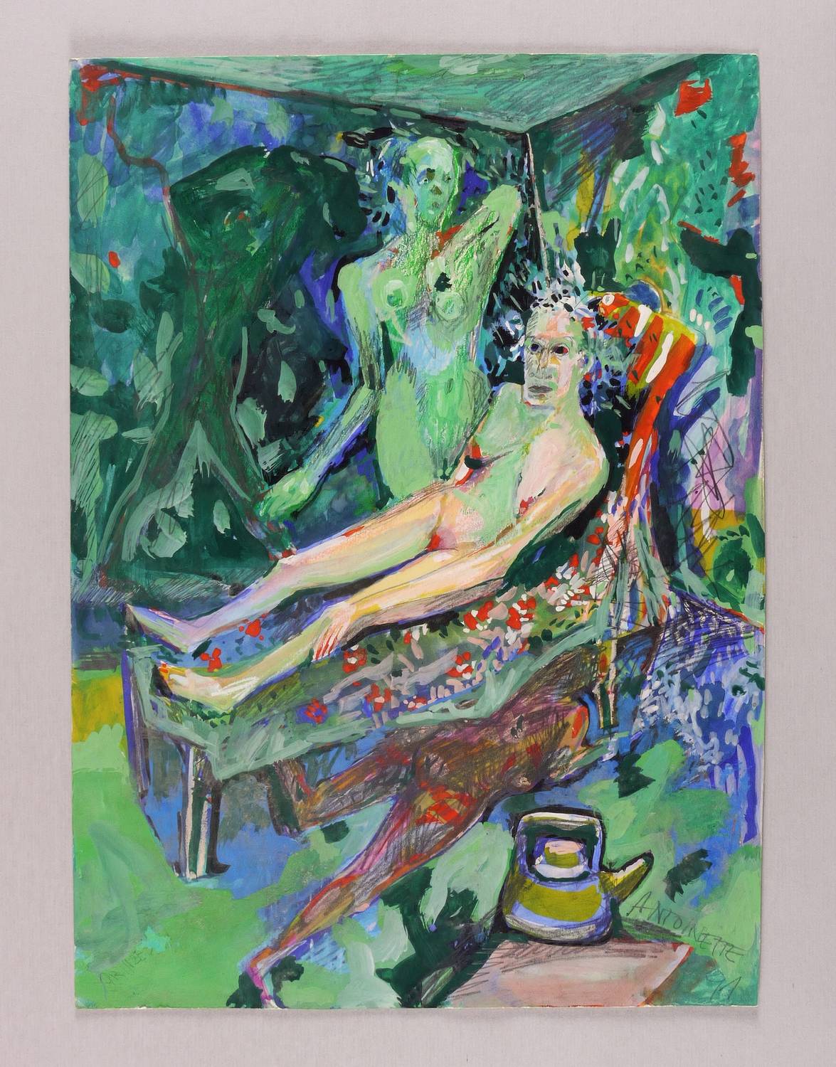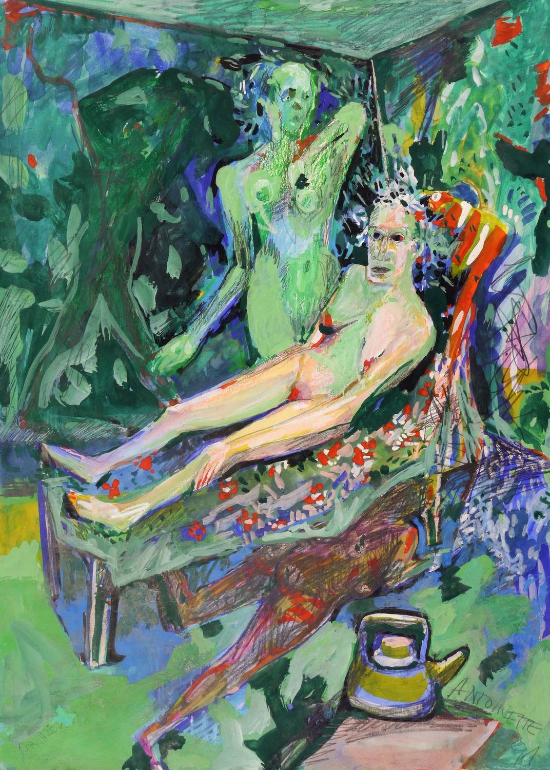 ANTOINETTE (*1956 Dresden, lebt und arbeitet in Berlin). Deutsche Malerin, Grafikerin und Performance-Künstlerin. 1973-75 Lehre als Schriftsetzerin. 1975/76 Studium Malerei an der Hochschule für Grafik und Buchkunst Leipzig (HGB). 1976 Geburt des Sohnes. 1979-84 Studium an der Kunsthochschule Berlin-Weißensee. Diverse Bühnenbilder, Performances, Installationen und Kunstprojekte. 1991 Meisterstudium bei Bernhard Heisig. Zahlreiche Aufträge für Wandgemälde. Später wieder Atelier in Berlin.
