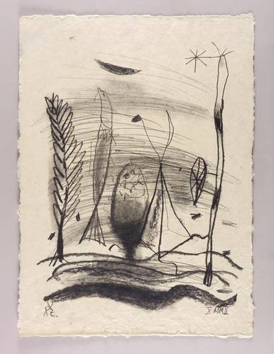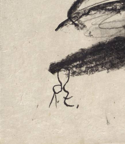 2002. Zeichnung / Graphit & sibirische Kreide, in Schwarz, auf wolkigem grobfasrigem chamois Japanbütten. – Originale Künstlergrafik, von Rainer Zille. – Unikat. – 68,0 x 49,5 cm (Darstellung / Blatt).
