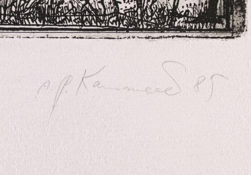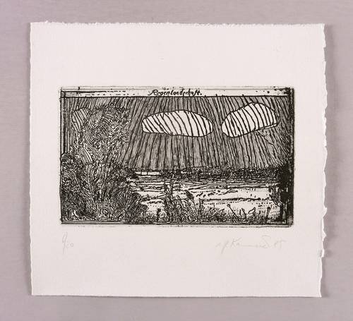 Rechts unten in Bleistift signiert und datiert: ″A.P. Kammerer 85″. Links Auflagenbezeichnung: ″6/20″. In der Platte oben bezeichnet: ″Regenlandschaft″. – Provenienz: Sammlung Erhard Frommhold, Dresden. – Sehr guter Zustand.