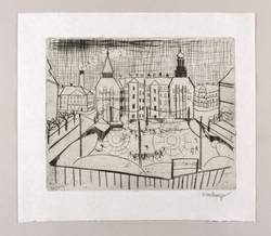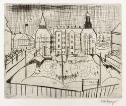 1919. Radierung / Kaltnadel, in Schwarz, mit Plattenton, auf feinem weißlichem Japanbütten. – Originale Künstlergrafik, von Otto Lange. – 44 x 50 cm (Blatt), 32,3 x 40,0 cm (Darstellung / Platte).