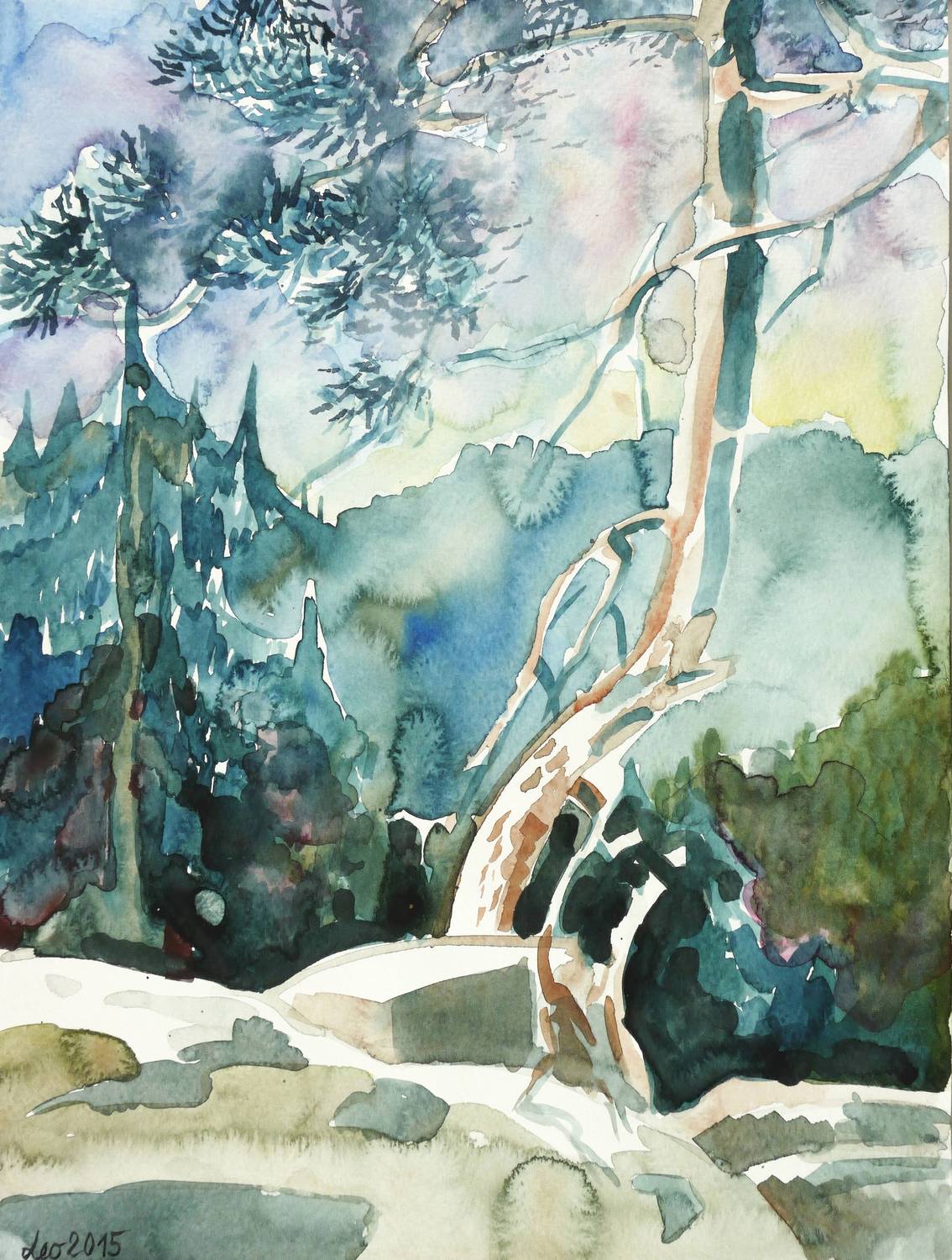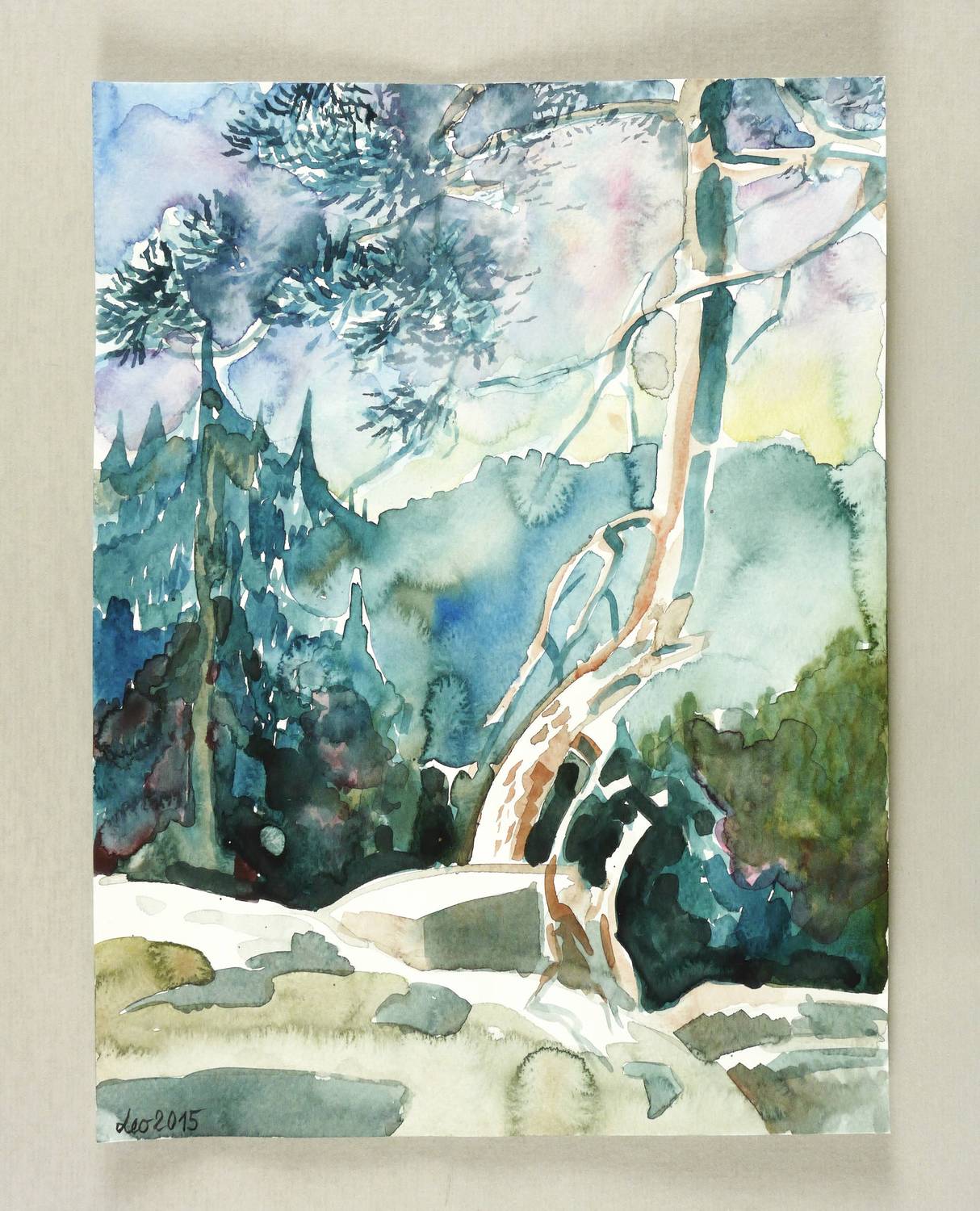 2015. Mischtechnik / Aquarellfarbe & farbige Tusche, auf Aquarellpapier. – Originale Künstlergrafik, von Leonore Adler. – Unikat. – 32,0 x 24,0 cm (Darstellung / Blatt).