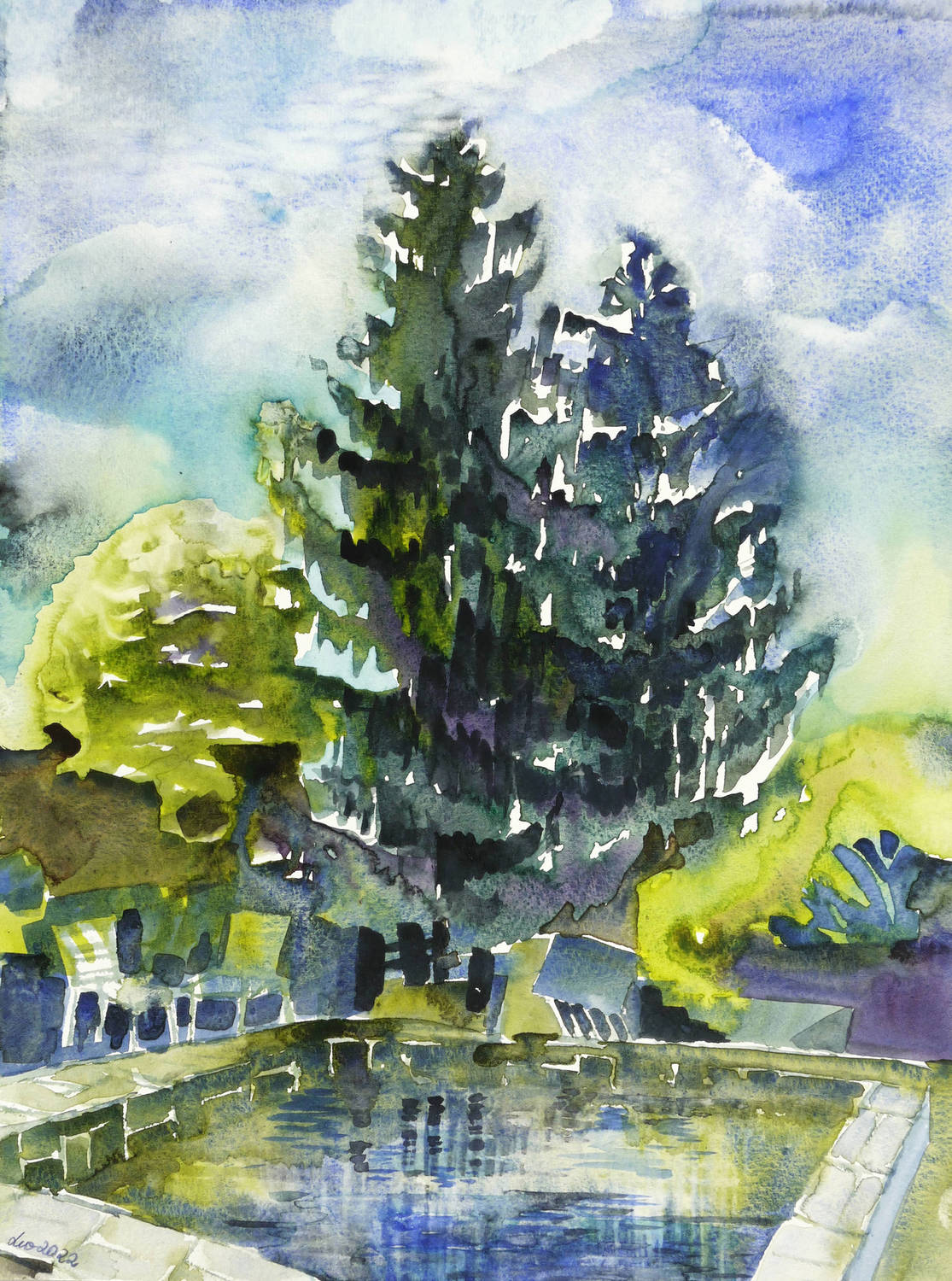 2022. Mischtechnik / Aquarellfarbe & farbige Tusche, auf Aquarellpapier. – Originale Künstlergrafik, von Leonore Adler. – Unikat. – 40,0 x 30,0 cm (Darstellung / Blatt).