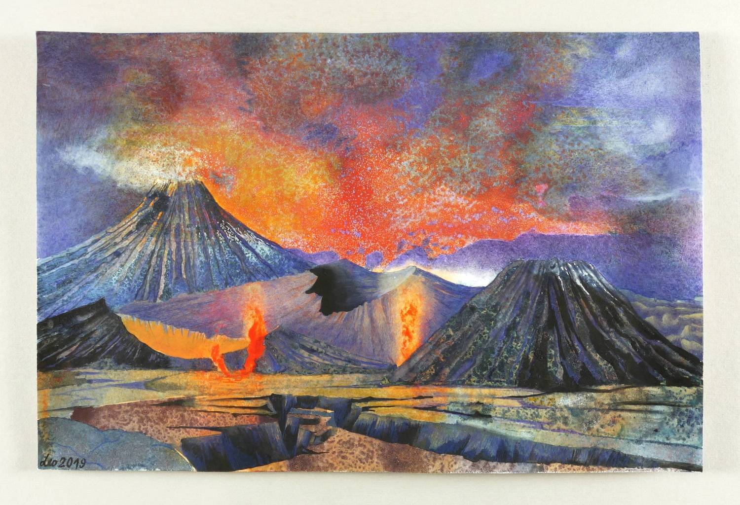 2019. Mischtechnik / Aquarellfarbe & farbige Tusche, auf Aquarellpapier. – Originale Künstlergrafik, von Leonore Adler. – Unikat. – 33,0 x 50,0 cm (Darstellung / Blatt).