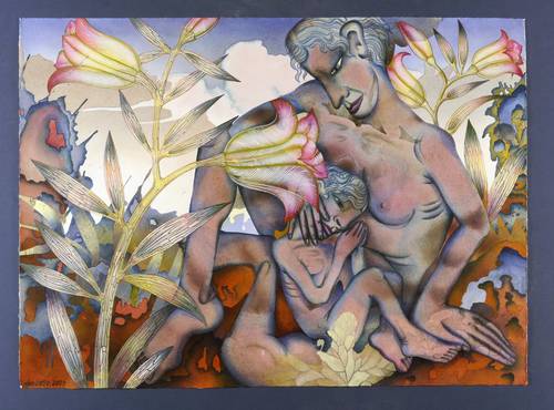 2007/2009. Mischtechnik / farbige Tusche & Acrylfarbe, auf Hahnemühle-Bütten. – Originale Künstlergrafik, von Leonore Adler. – Unikat. – 57,0 x 78,0 cm (Darstellung / Blatt).