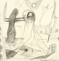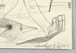 1996. Zeichnung / Bleistiftzeichnung, auf hellgelbem Karton. – Originale Künstlergrafik, von Christiane Latendorf. – Unikat. – 12,3 x 11,6 cm (Darstellung / Blatt).