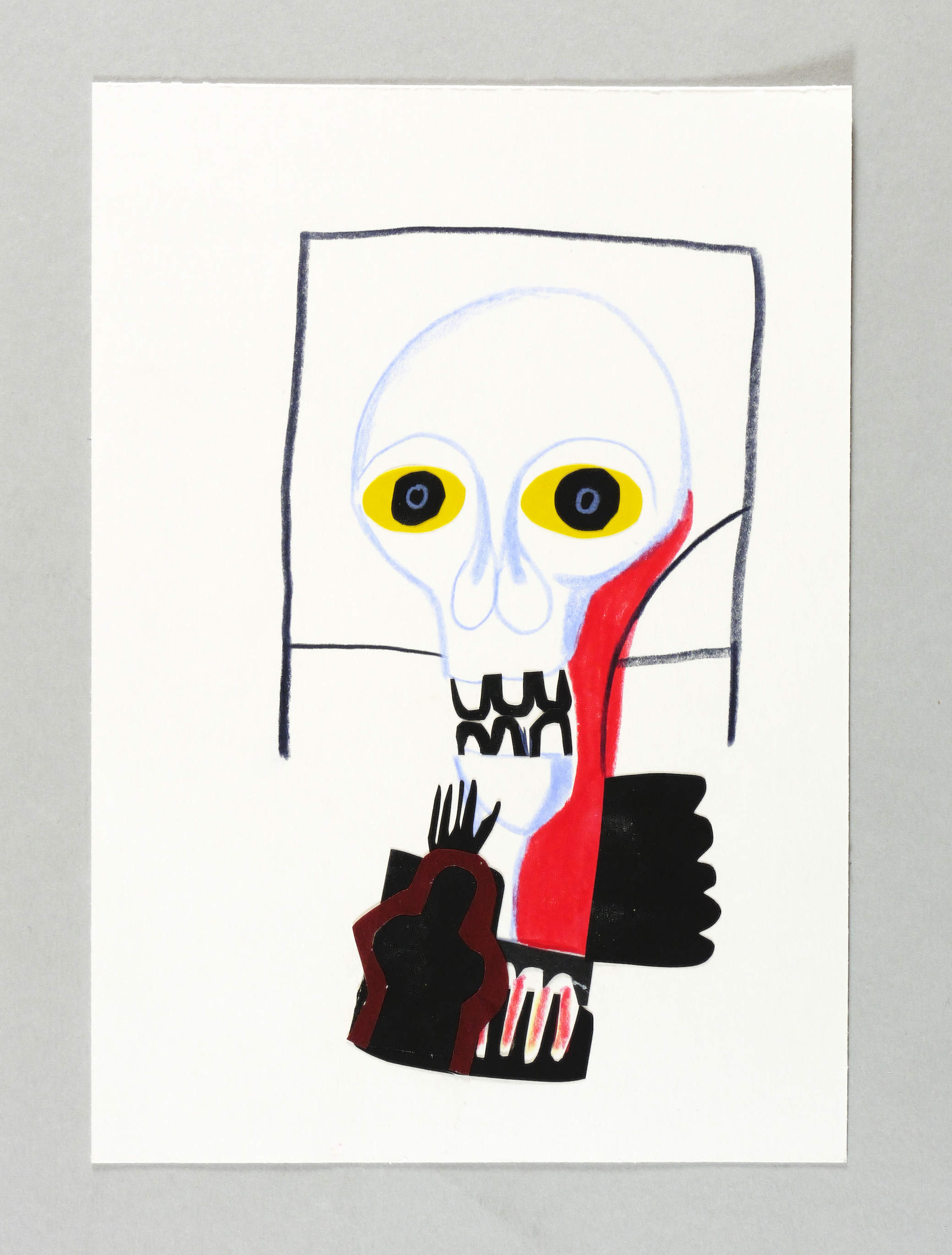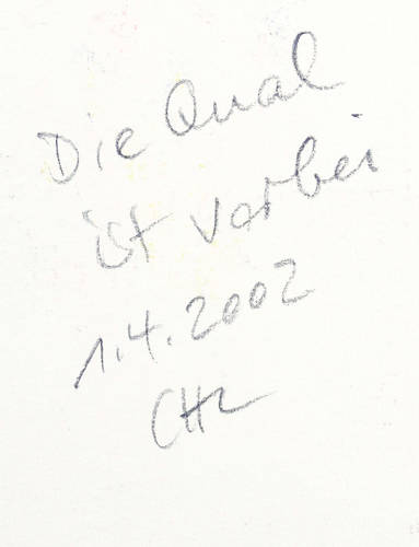 2002. Collage / Papiercollage & Fettkreide, auf Papier. – Originale Künstlergrafik, von Christiane Latendorf. – Unikat. – 16,5 x 9,0 cm (Darstellung), 21,0 x 14,7 cm (Blatt).