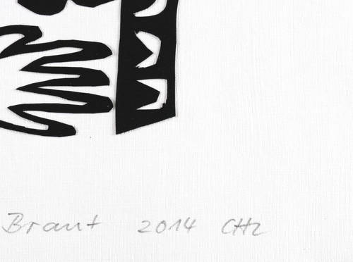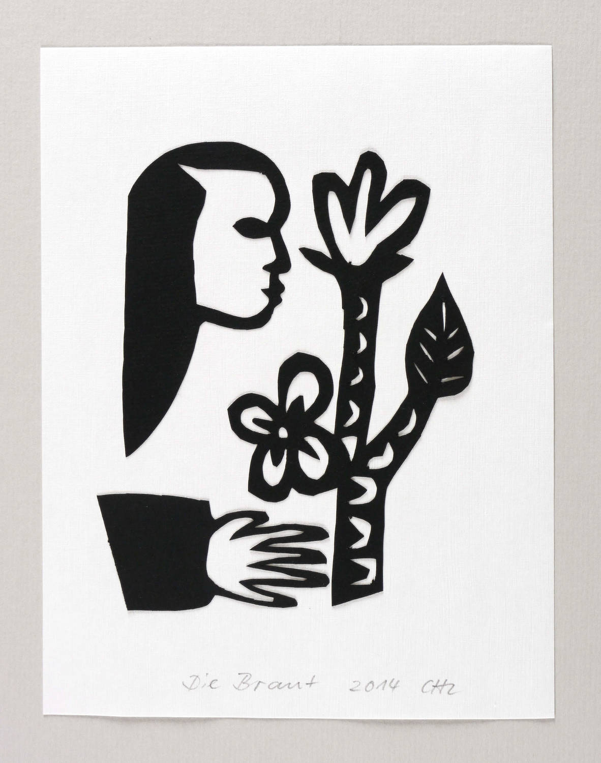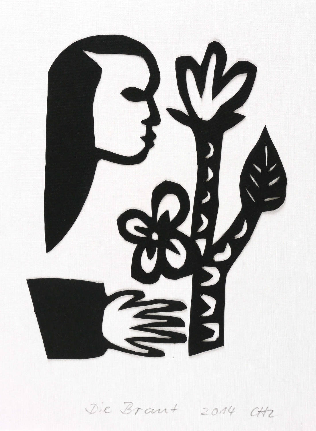 2014. Scherenschnitt, in Schwarz, auf weißem Büttenkarton. – Originale Künstlergrafik, von Christiane Latendorf. – Unikat. – 15,0 x 9,5 cm (Darstellung / Blatt).
