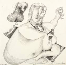 1995. Zeichnung / Bleistiftzeichnung, auf Karton. – Originale Künstlergrafik, von Christiane Latendorf. – Unikat. – 18,8 x 18,8 cm (Darstellung / Blatt), 19,4 x 19,4 cm (Trägerblatt).
