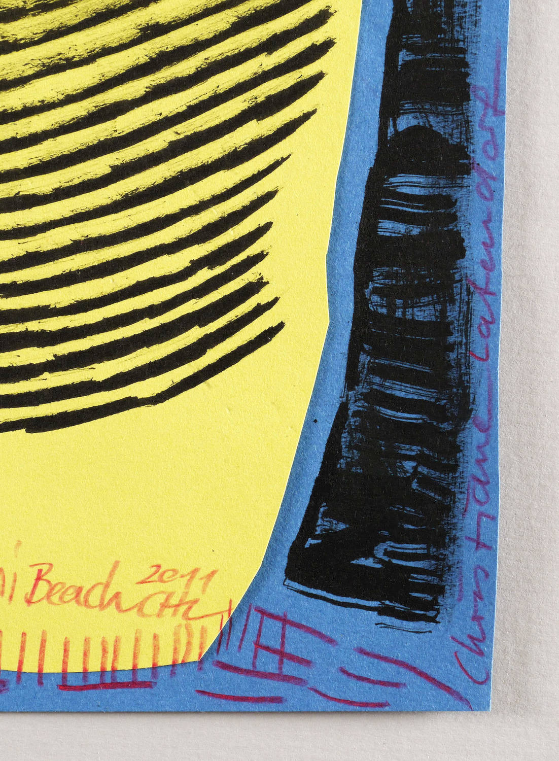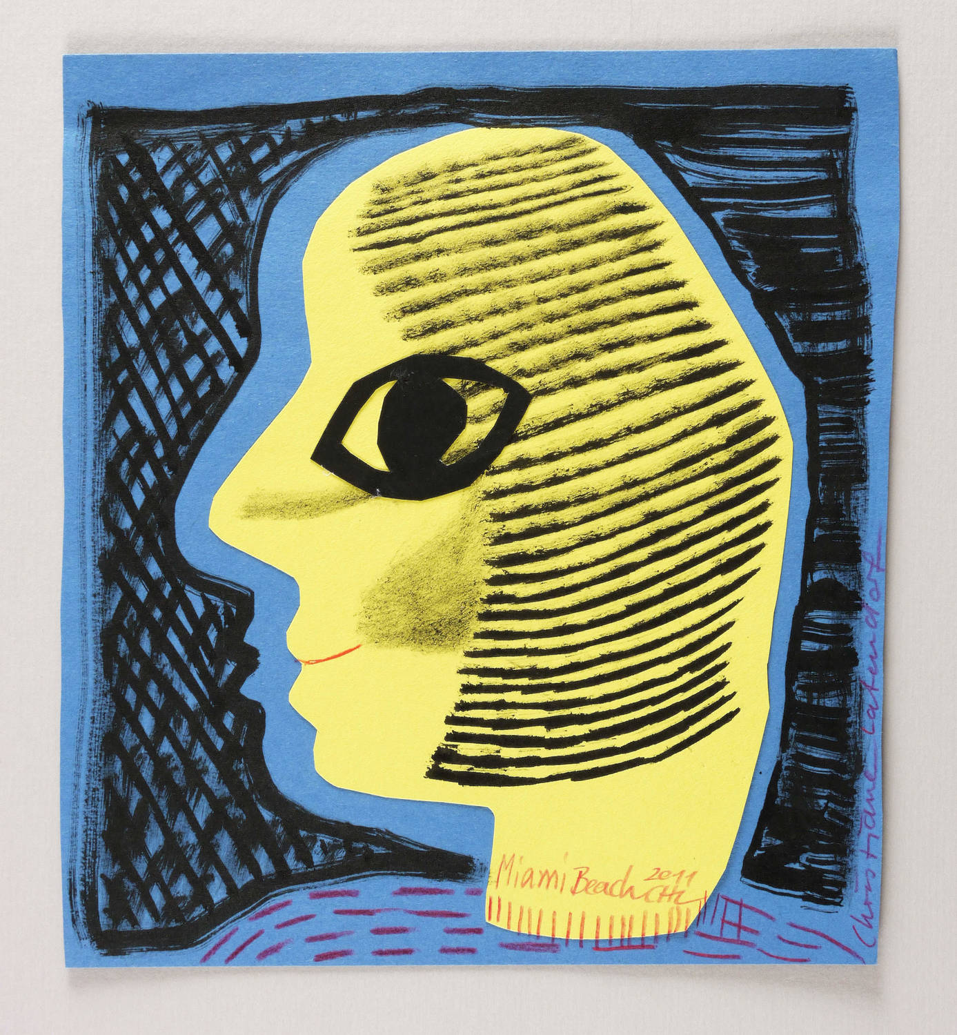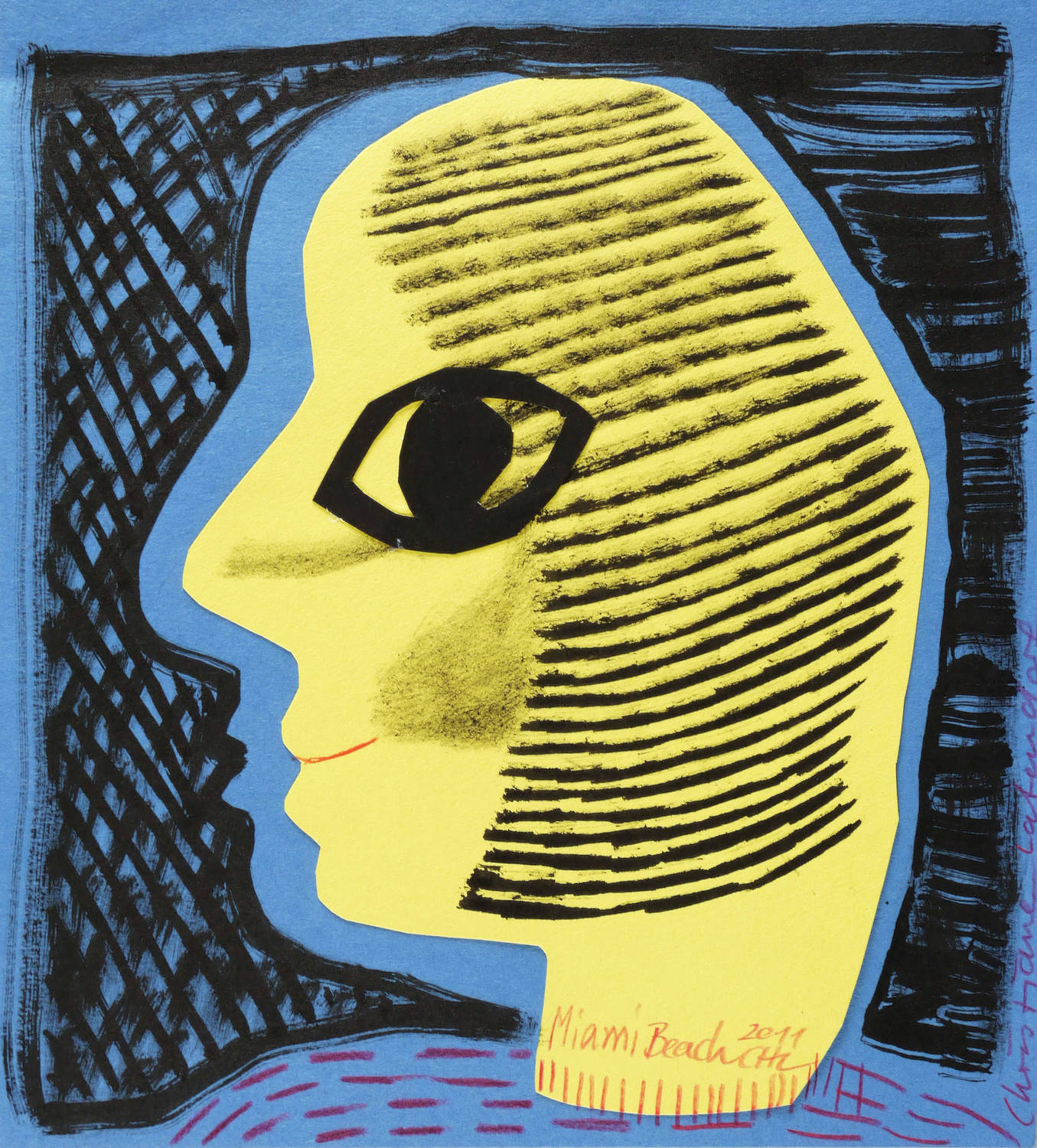 2011. Mischtechnik / Scherenschnitt & Pinselzeichnung, in schwarzer Tusche, dazu Farbstift, auf blauem Karton. – Originale Künstlergrafik, von Christiane Latendorf. – Unikat. – 23,0 x 20,5 cm (Darstellung / Blatt).