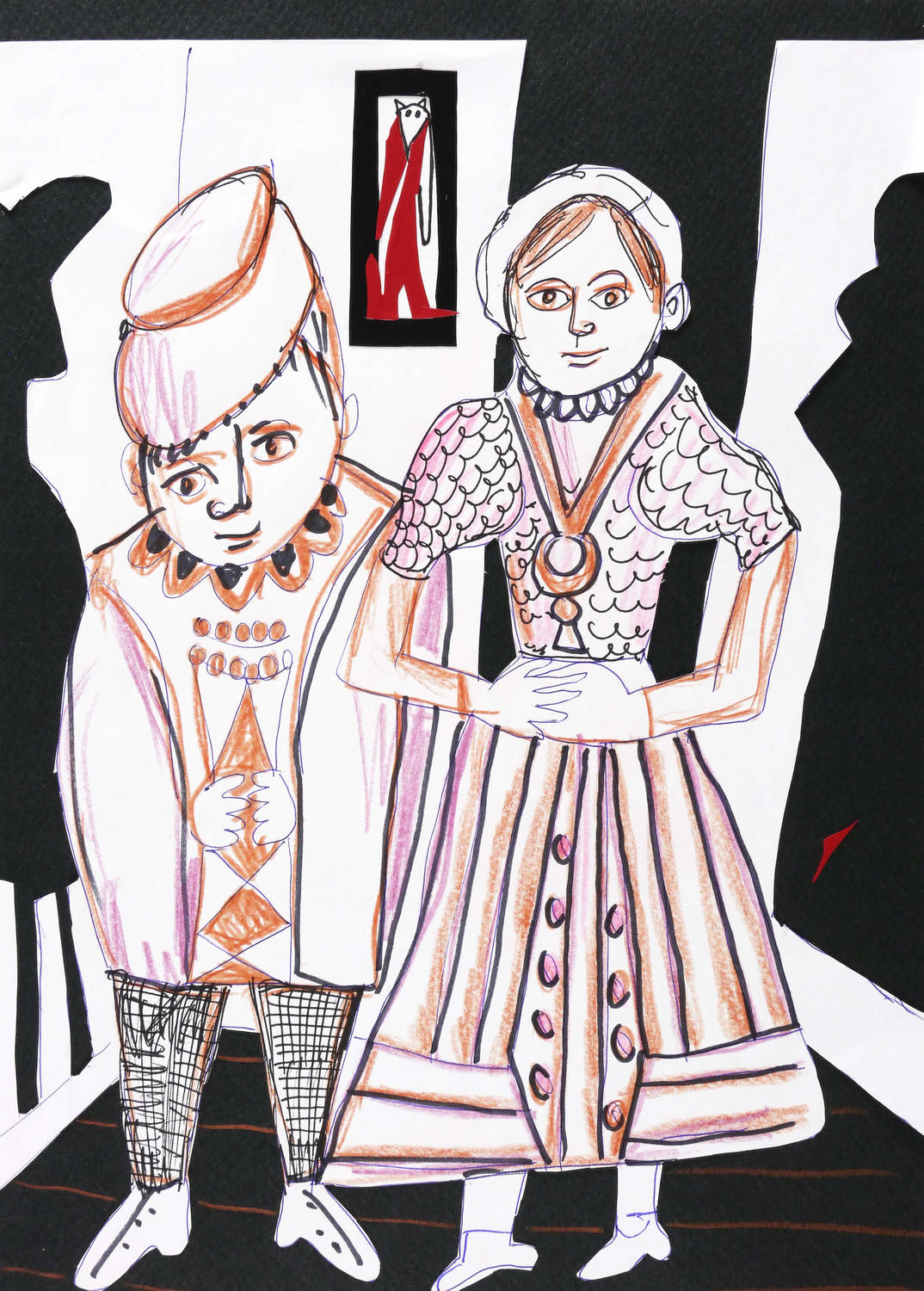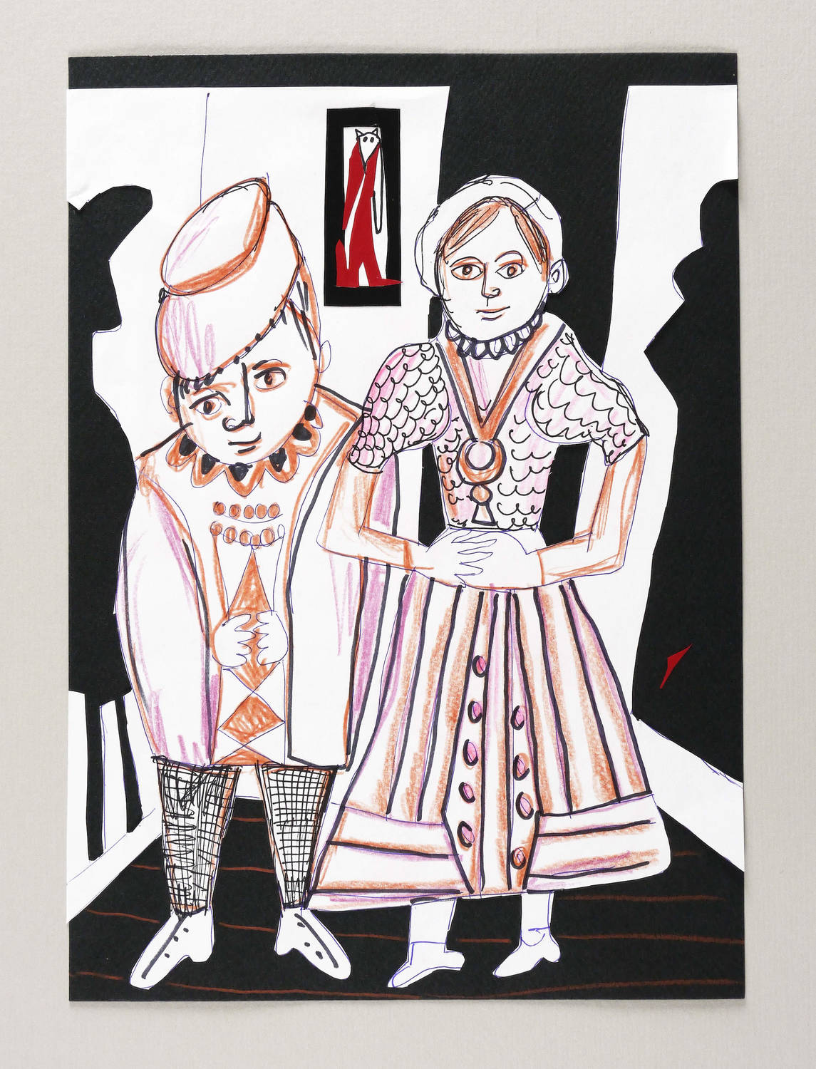 2020. Mischtechnik / Collage & Zeichnung, Farbkreide, Faserstifte, diverse Papiere, auf schwarzem Karton. – Originale Künstlergrafik, von Christiane Latendorf. – Unikat. – 29,0 x 21,0 cm (Darstellung / Blatt).