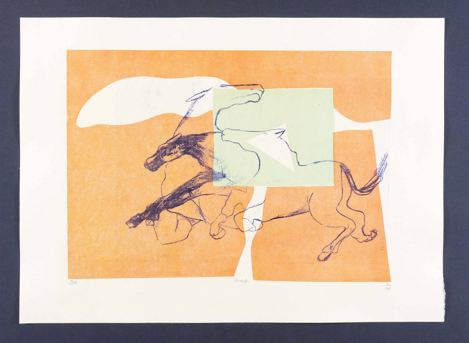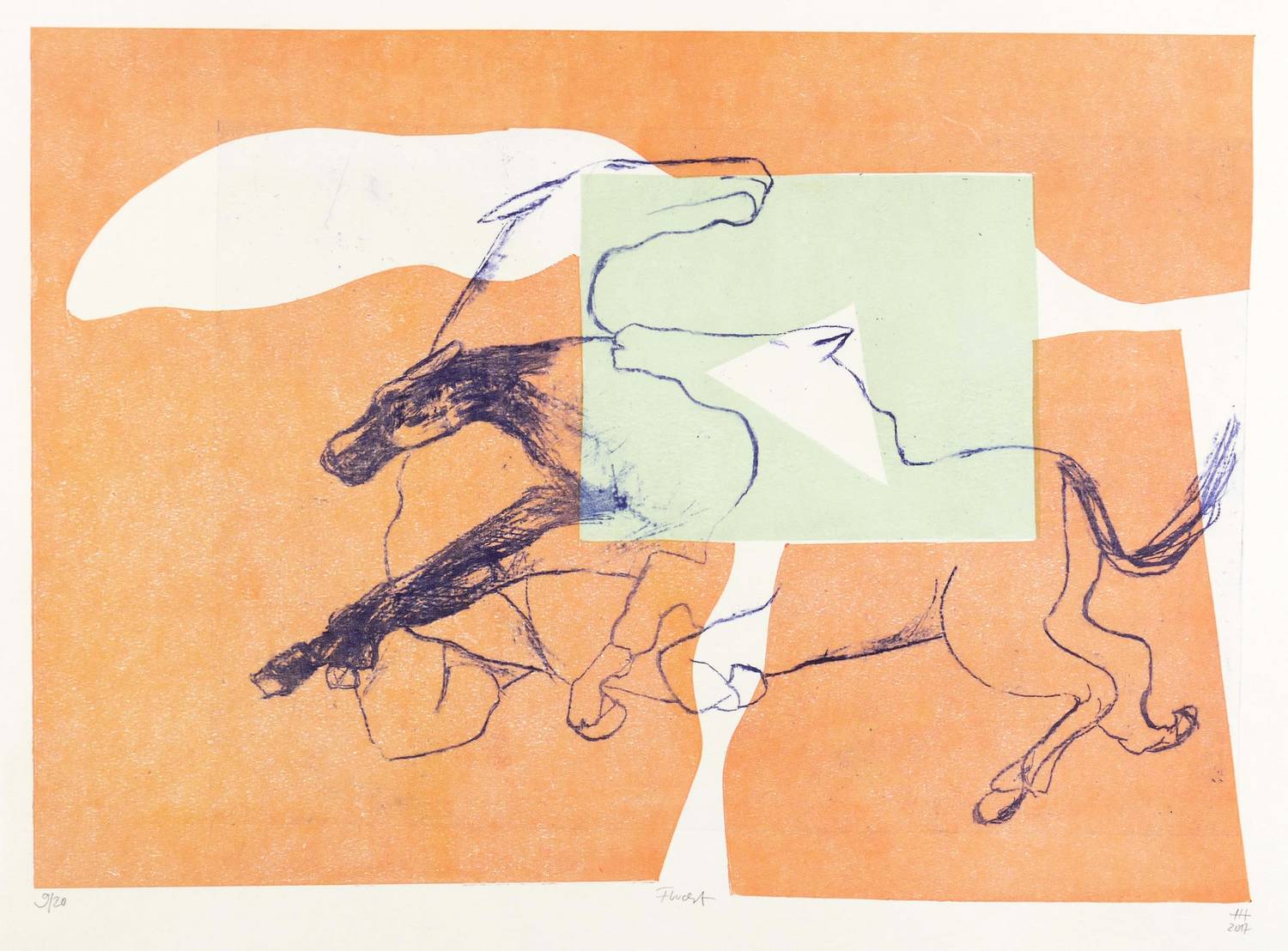 2017. Mischtechnik / Algrafie & Schablonendruck, in 3 Farben, auf weißem Karton. – Originale Künstlergrafik, von Helene Heyder. – Auflage Exemplar Nr. 9/20. – 32,4 x 45,5 cm (Darstellung / Druckbild), 43 x 60 cm (Blatt).
