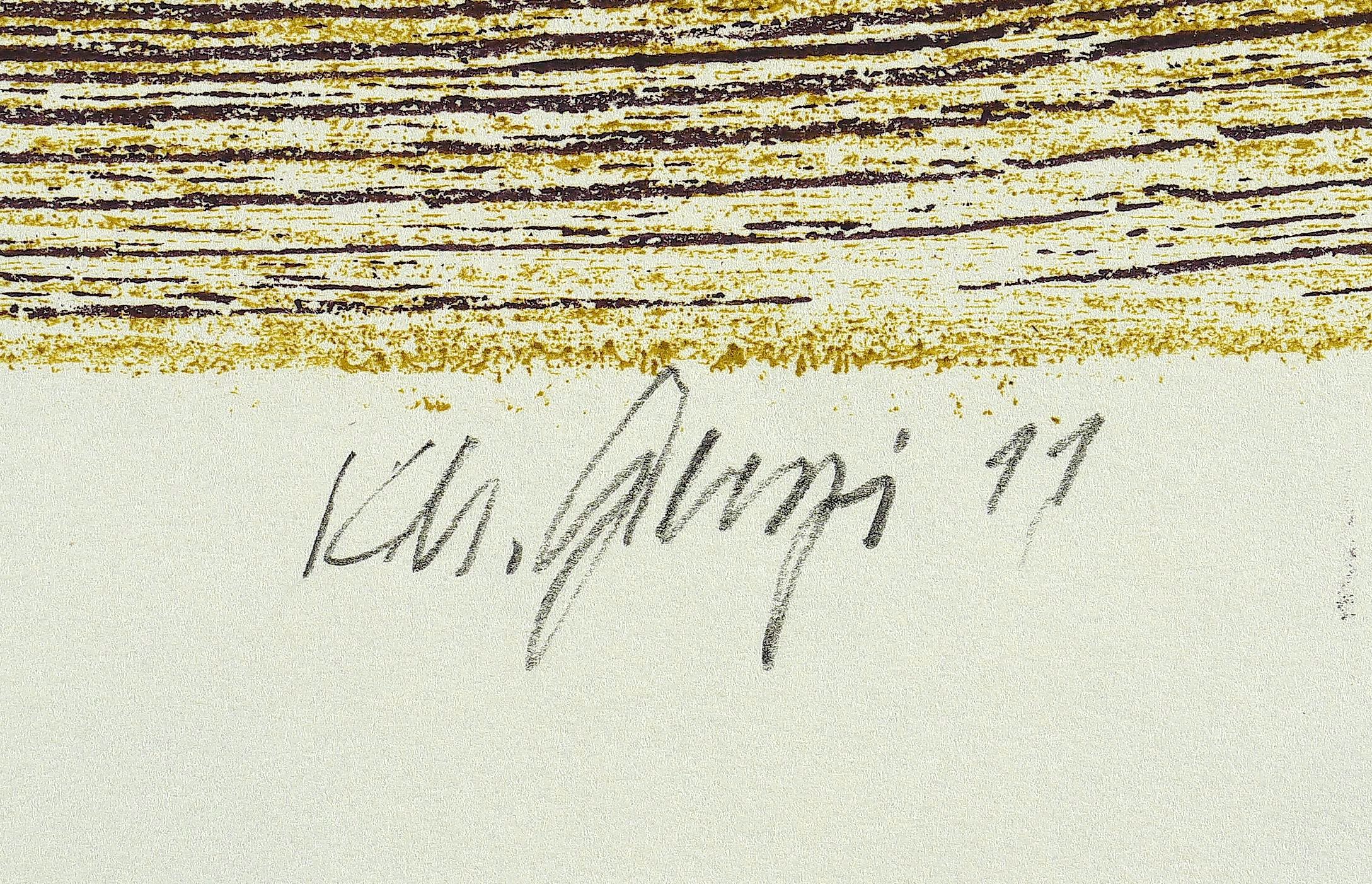 Karlheinz Georgi (*1934 Oberhohndorf bei Zwickau - 2019 Dresden). Deutscher Maler, Wandgestalter und Grafiker. 1948-50 Mal- und Zeichenschule in Zwickau bei Tatjana Lietz und Horst Michel. 1952-58 Architekturstudium an der TH Dresden. Hilfsassistent bei Georg Nerlich. 1962-90 diverse baugebundene Arbeiten, Wandgestaltungen, Orgelprospekte und Kirchenfenster u.a. in Dresden, Görlitz, Werl und Warschau. 1964-2011 Lehrauftrag für Malerei und Grafik sowie für Zeichnung und Druckgrafik an der TU Dresden. 1978 Promotion. 1990 Professor für Zeichnung und Architekturdarstellung, 1992 Institutsdirektor. 1992 Mitglied des Sächsischen Künstlerbundes. Die neben der Lehrtätigkeit immer betriebene freie grafische Arbeit nahm mit der Emeritierung 2000 neuen Raum ein.