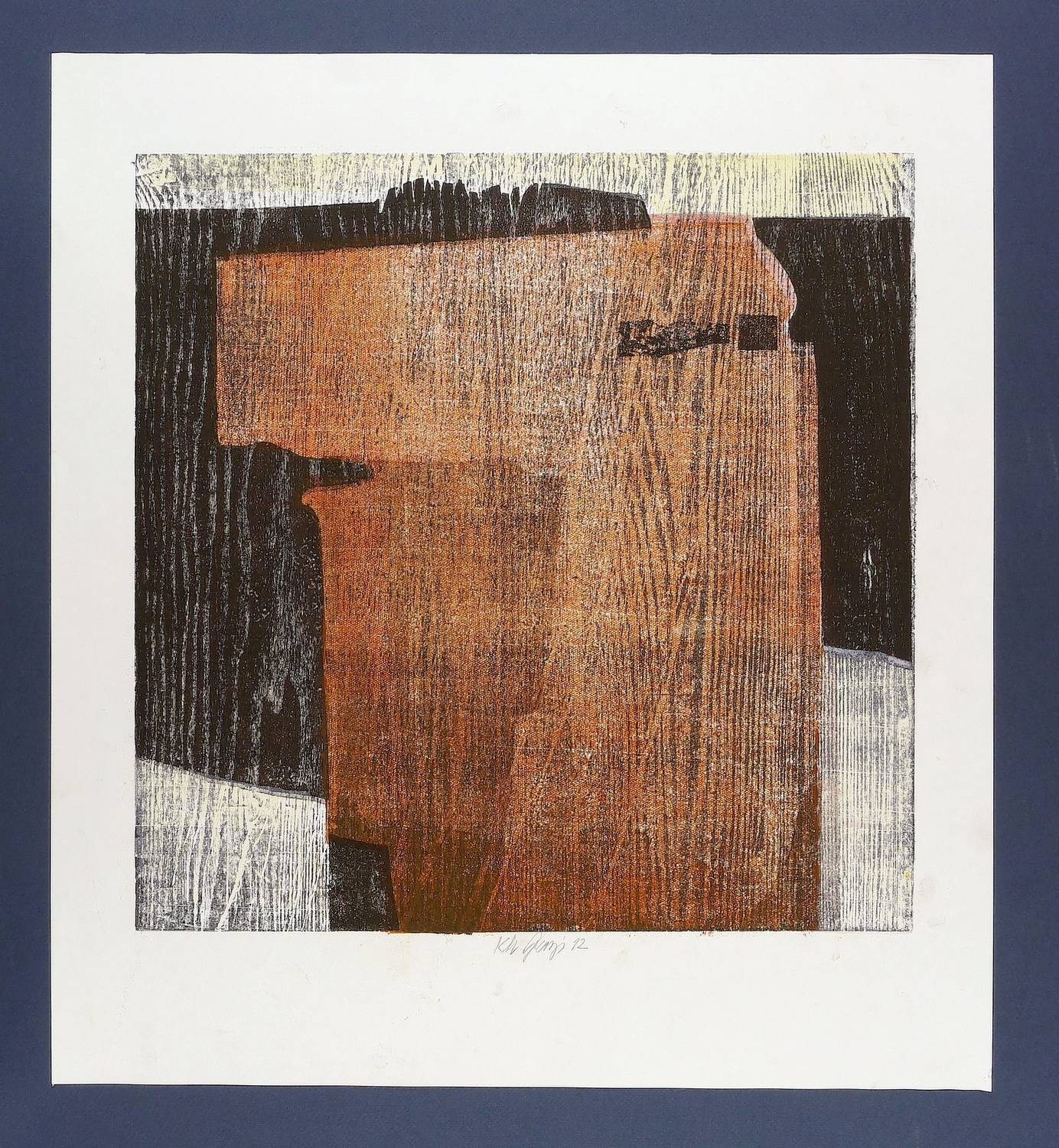 2012. Farbholzschnitt & Materialdruck, auf weißem Karton. – Originale Künstlergrafik, von Karlheinz Georgi. – Unikat. – 41,5 x 41,5 cm (Darstellung / Druckstock), 55 x 50 cm (Blatt).