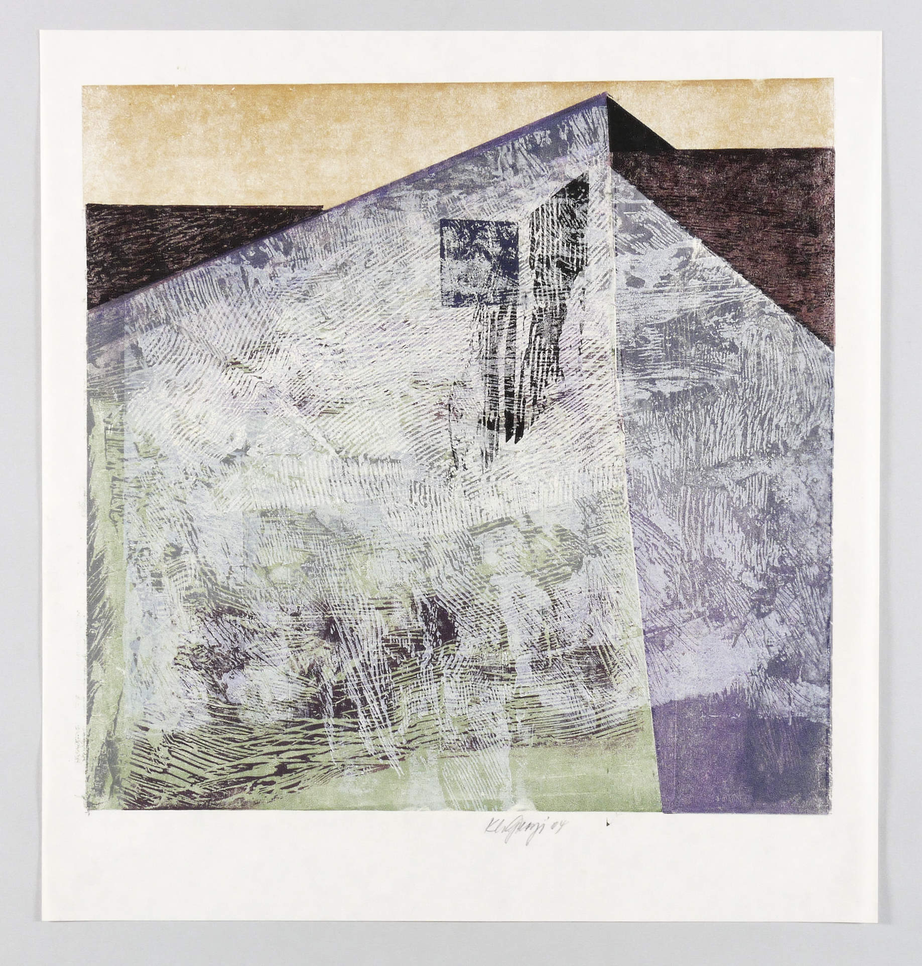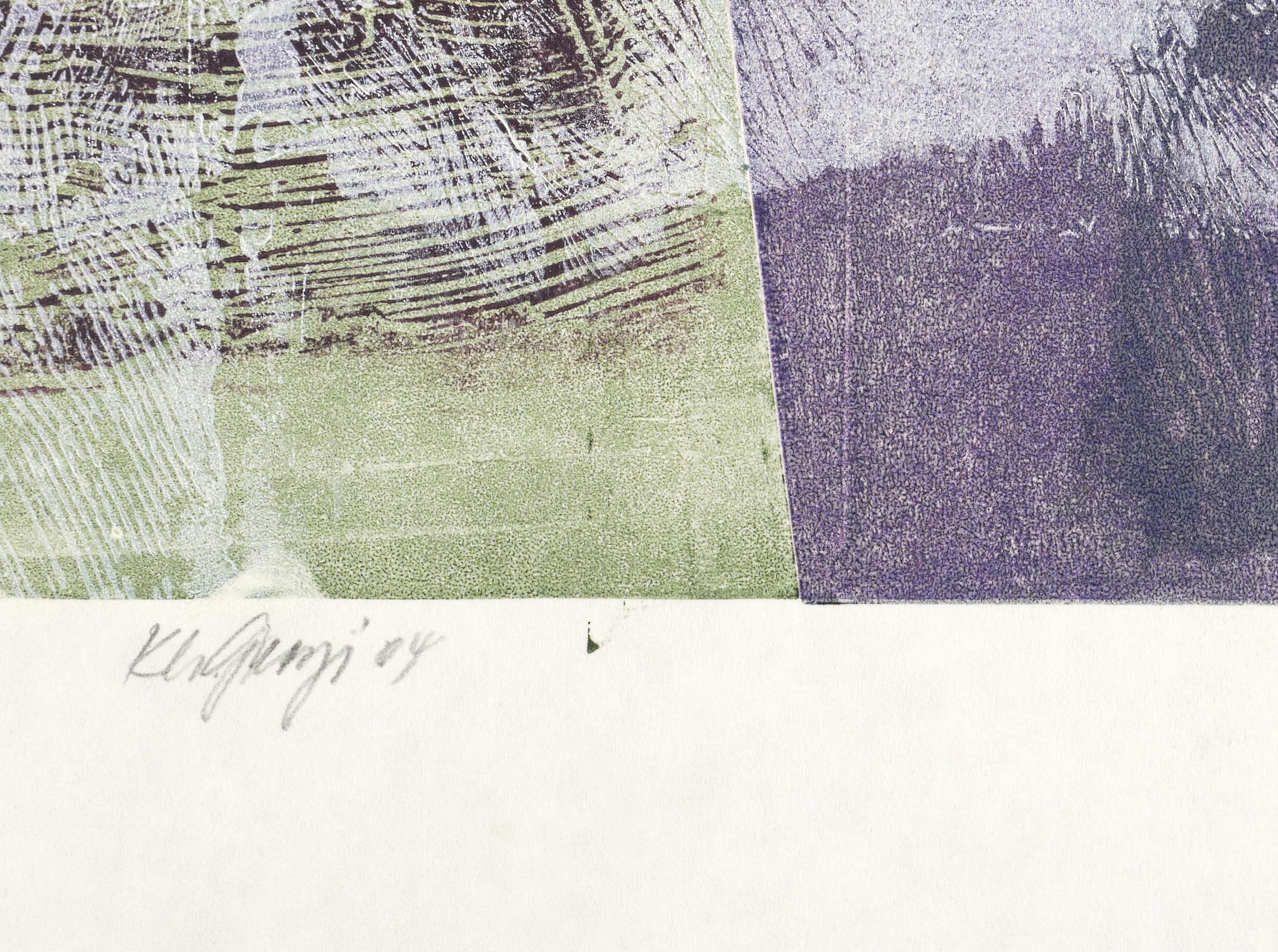 2004. Farbholzschnitt & Materialdruck, in 8 Farben, auf leichtem hellchamois Velin. – Originale Künstlergrafik, von Karlheinz Georgi. – Auflage Exemplar Nr. 1/1 (Unikat). – 43,8 x 44,8 cm (Darstellung / Druckbild), 54 x 50 cm (Blatt).