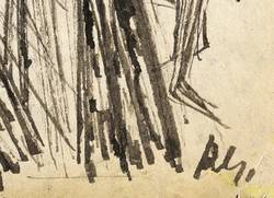 Rechts unten in Pinsel mit Monogramm signiert. – Papier altersbedingt gebräunt. Links unregelmäßiger Rand. Im unteren Rand Farbfleck (atelierspurig). Rechte untere Ecke Eselsohr. Mäßig guter Zustand.