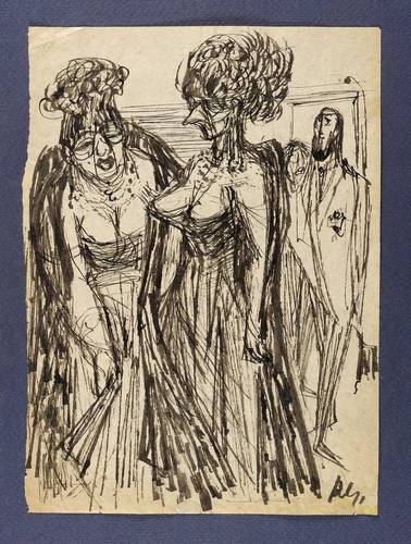 Um 1955. Zeichnung / Federzeichnung, in schwarzer Tusche, mit Pinsel überarbeitet, auf Papier. – Originale Künstlergrafik, von Rudi Gruner. – Unikat. – 20,7 x 15,1 cm (Darstellung / Blatt).