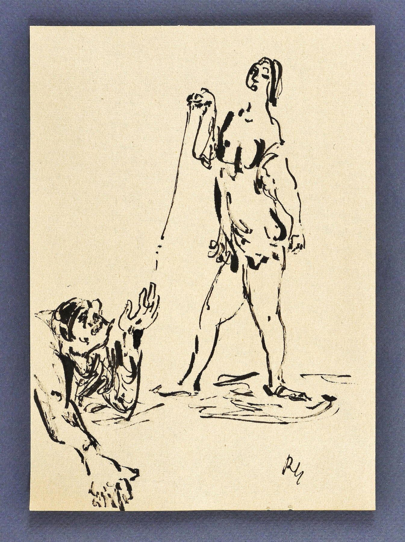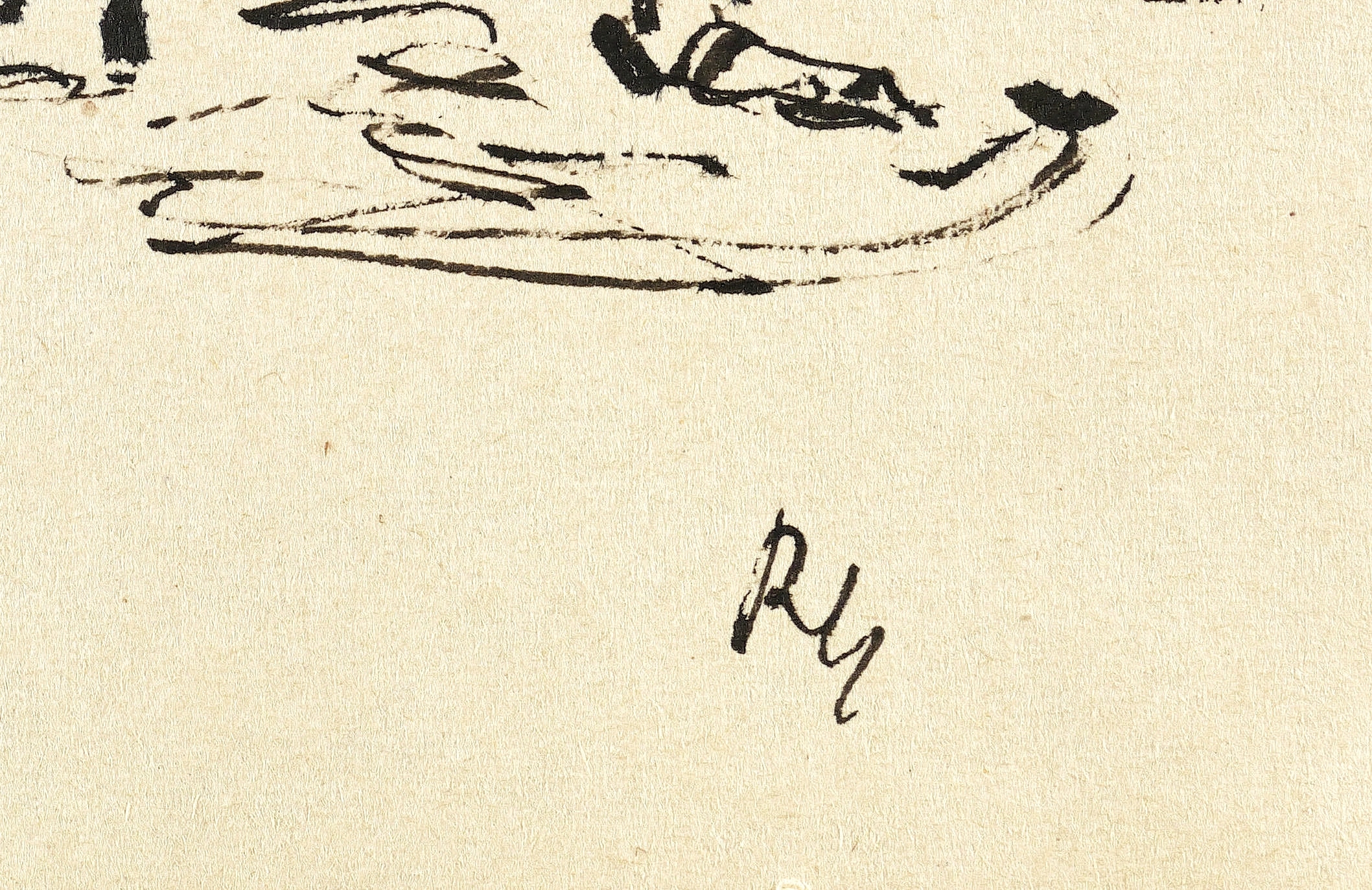 Rechts unten in schwarzer Feder Monogramm. Verso zusätzlich in schwarzer Feder signiert. – Sehr guter Zustand.