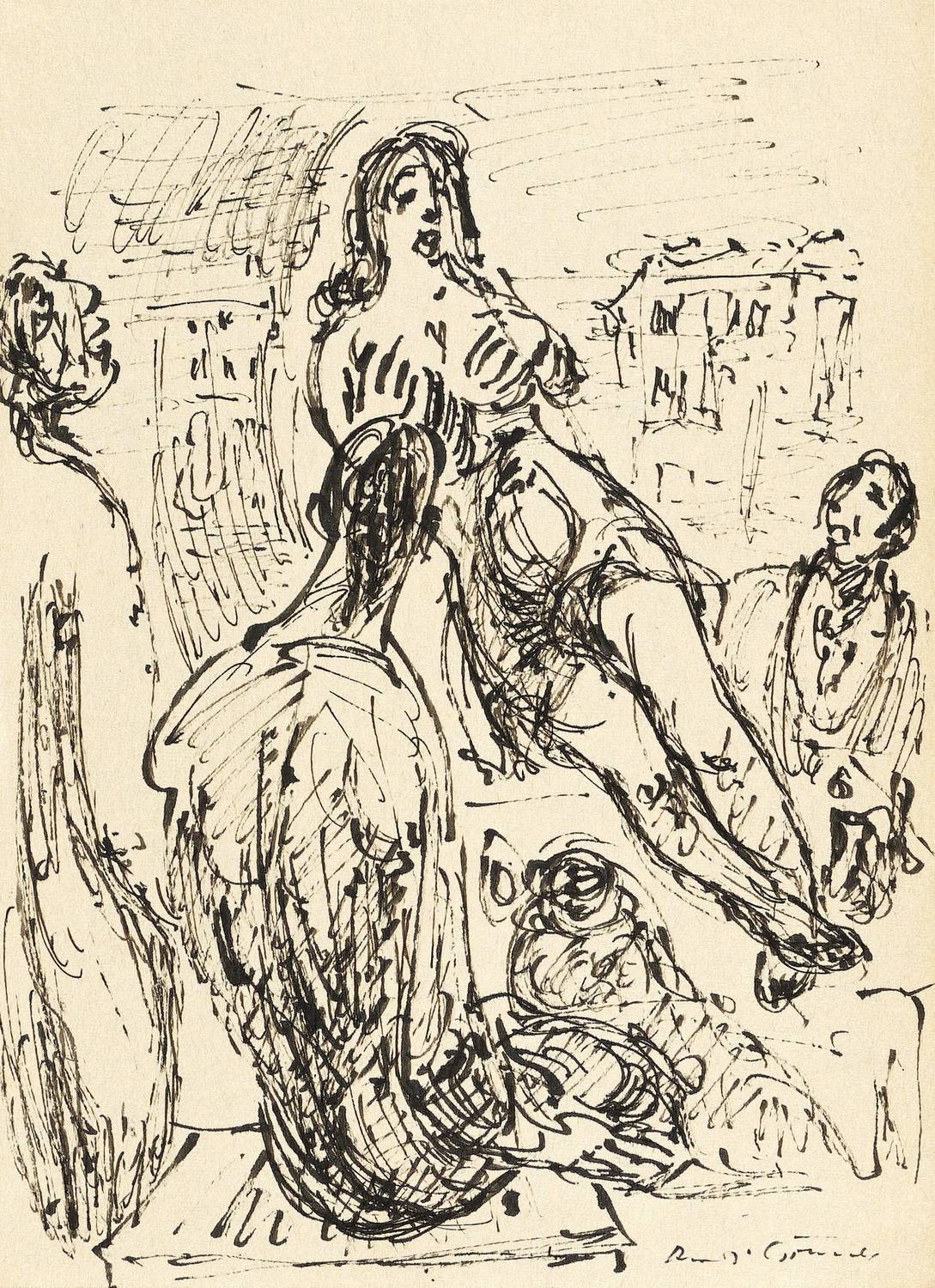 Um 1965. Zeichnung / Federzeichnung, in schwarzer Tusche, auf Papier. – Originale Künstlergrafik, von Rudi Gruner. – Unikat. – 20,9 x 14,8 cm (Darstellung / Blatt).