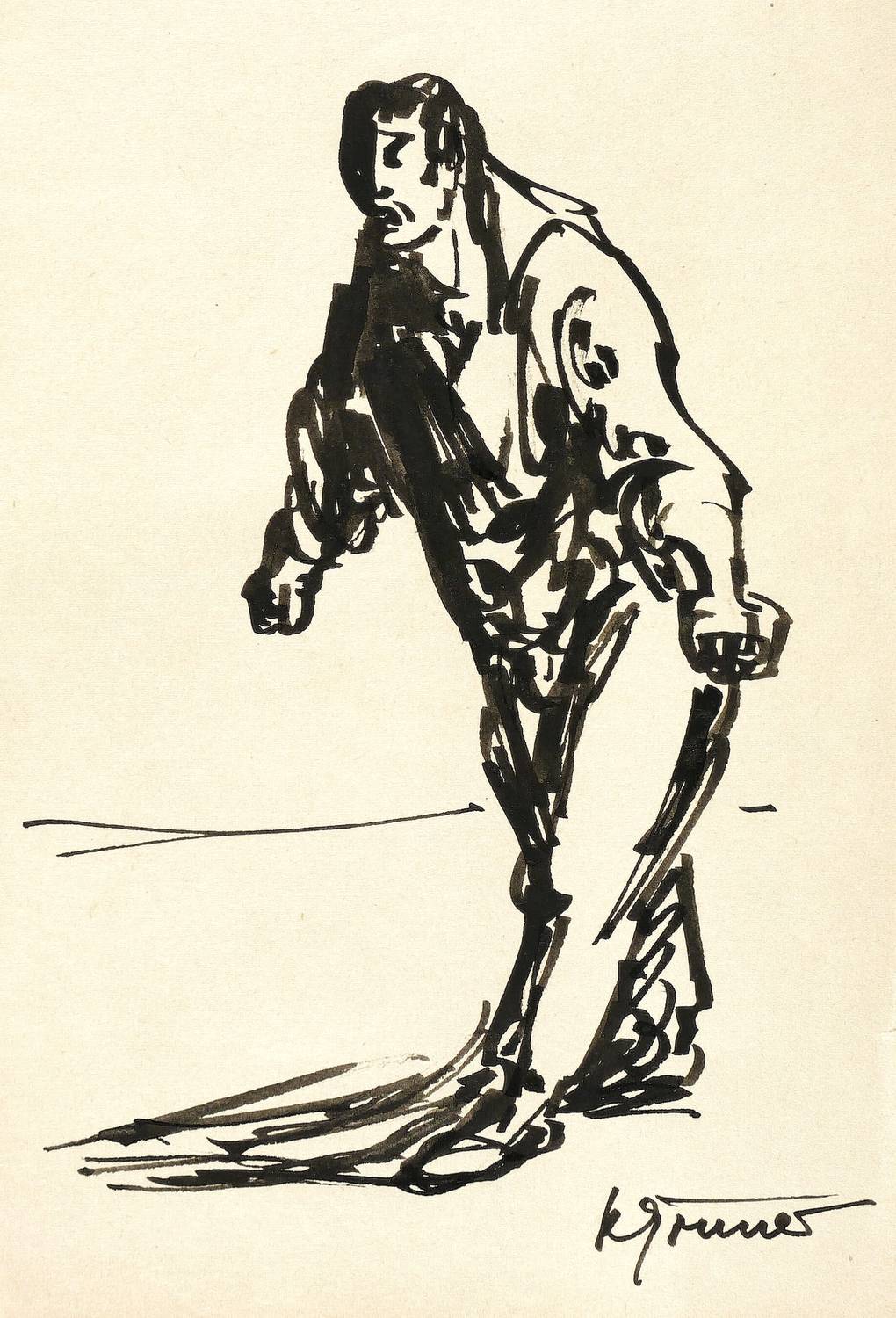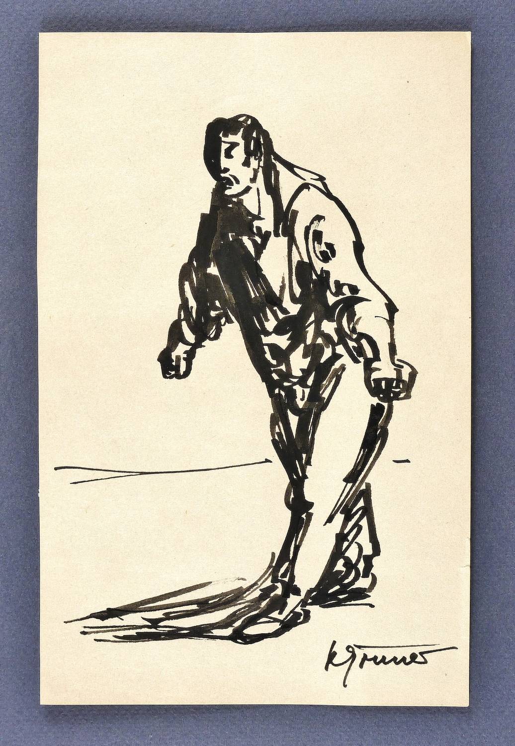 1950-1960. Zeichnung / Pinselzeichnung, in schwarzer Tusche, auf Papier. – Originale Künstlergrafik, von Rudi Gruner. – Unikat. – 16,2 x 11,3 cm (Darstellung), 20,5 x 13 cm (Blatt).