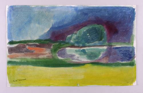 Um 1970. Aquarell, auf hellchamois Karton. – Originale Künstlergrafik, von Rudi Gruner. – Unikat. – 37,0 x 60,0 cm (Darstellung), 40 x 63 cm (Blatt).
