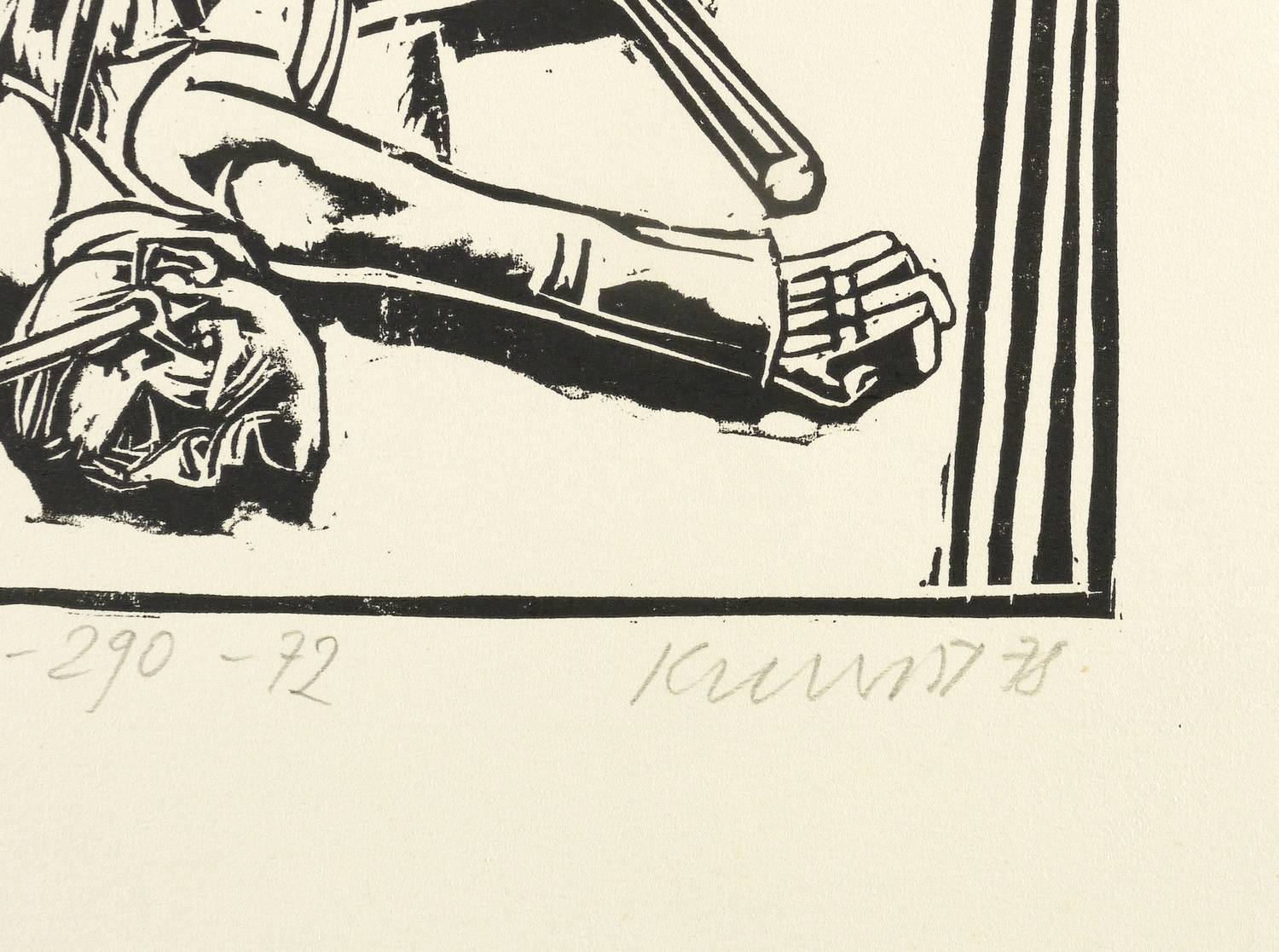 1978. Holzschnitt, in Schwarz, auf hellchamois Velin. – Originale Künstlergrafik, von Rolf Kuhrt. – Auflage Exemplar Nr. 72/290. – 18,0 x 23,7 cm (Darstellung / Druckbild), 30 x 36 cm (Blatt).