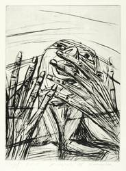 1988. Radierung / Kaltnadel, in Schwarz, mit leichtem plattenton, auf Hahnemühle-Bütten. – Von Rolf Kuhrt. – Auflage Exemplar Nr. 5/5. – 39,5 x 29,5 cm (Darstellung / Platte), 57,5 x 38 cm (Blatt).