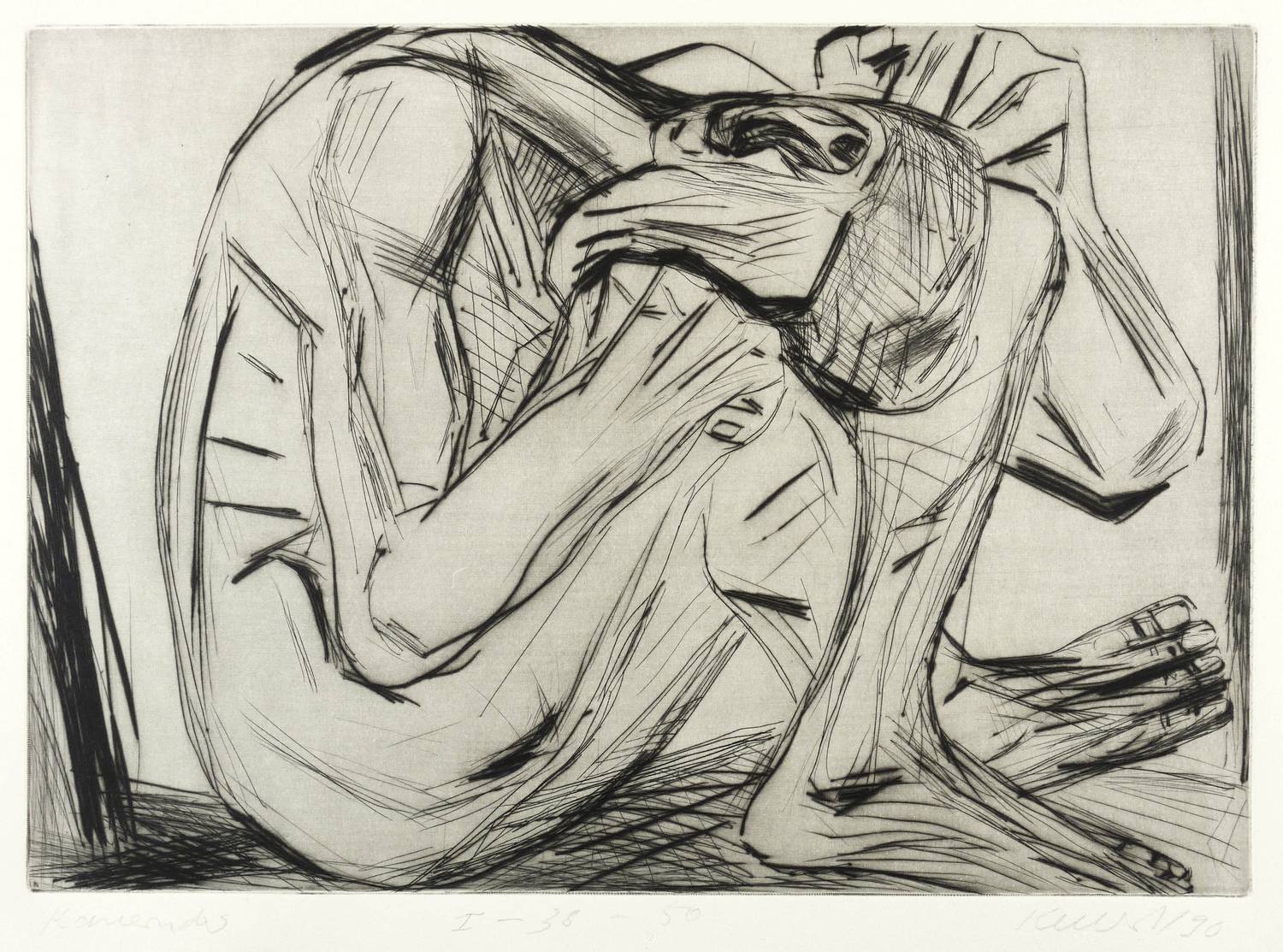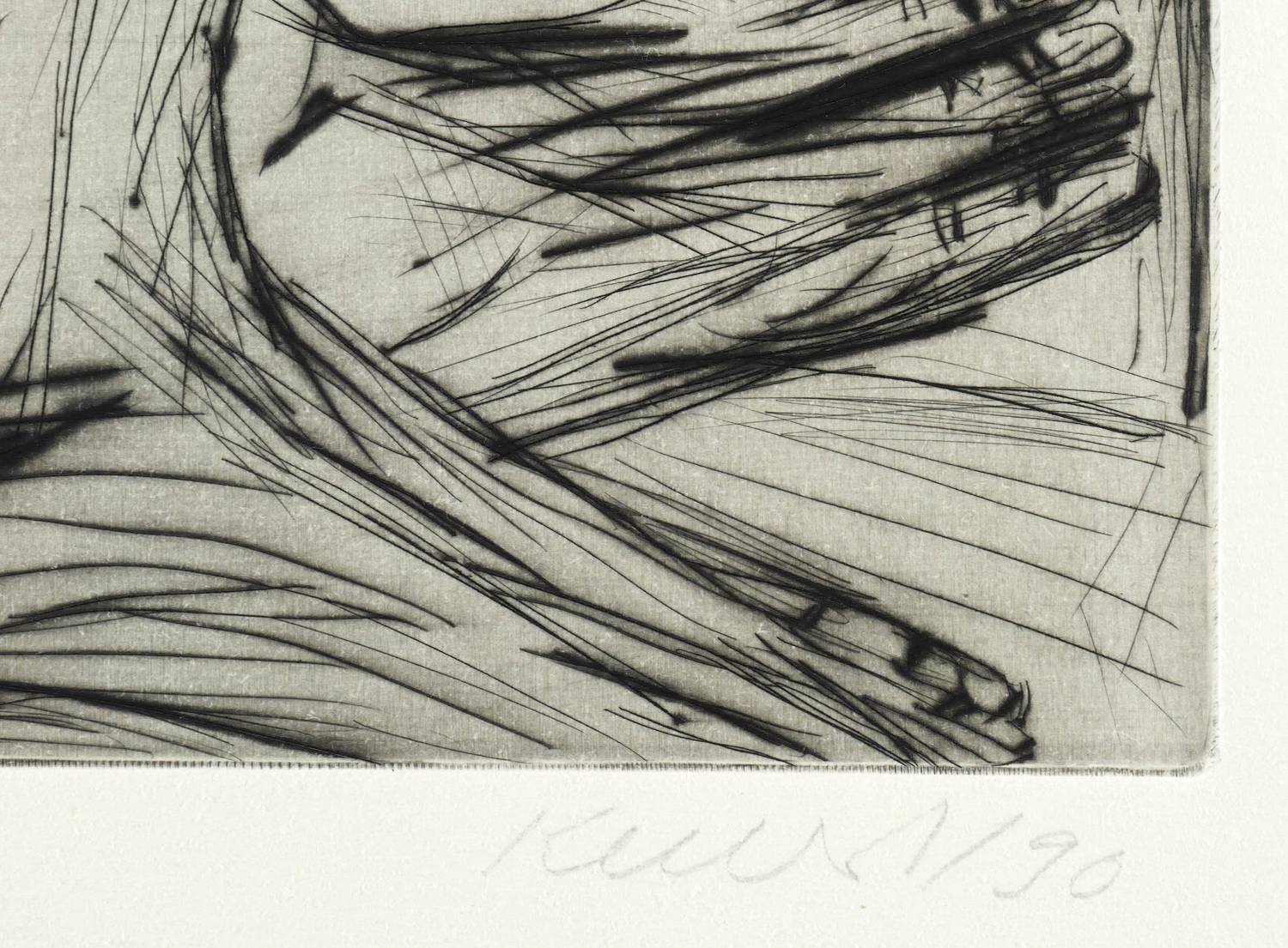 1990. Radierung / Strichätzung & Kaltnadel, mit Plattenton, in Schwarz, auf Hahnemühle-Bütten. – Originale Künstlergrafik, von Rolf Kuhrt. – Auflage Exemplar Nr. 38/50. – 32,0 x 45,3 cm (Darstellung / Platte), 40 x 54 cm (Blatt).