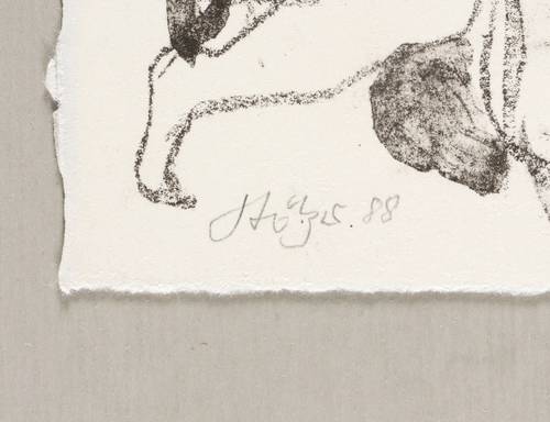 1988. Lithografie / Kreide- & Pinsellithografie, in Schwarz, auf festem weißem Bütten. – Originale Künstlergrafik, von Werner Stötzer. – Künstlerexemplar (e.a.). – 19,6 x 13,0 cm (Darstellung / Blatt).