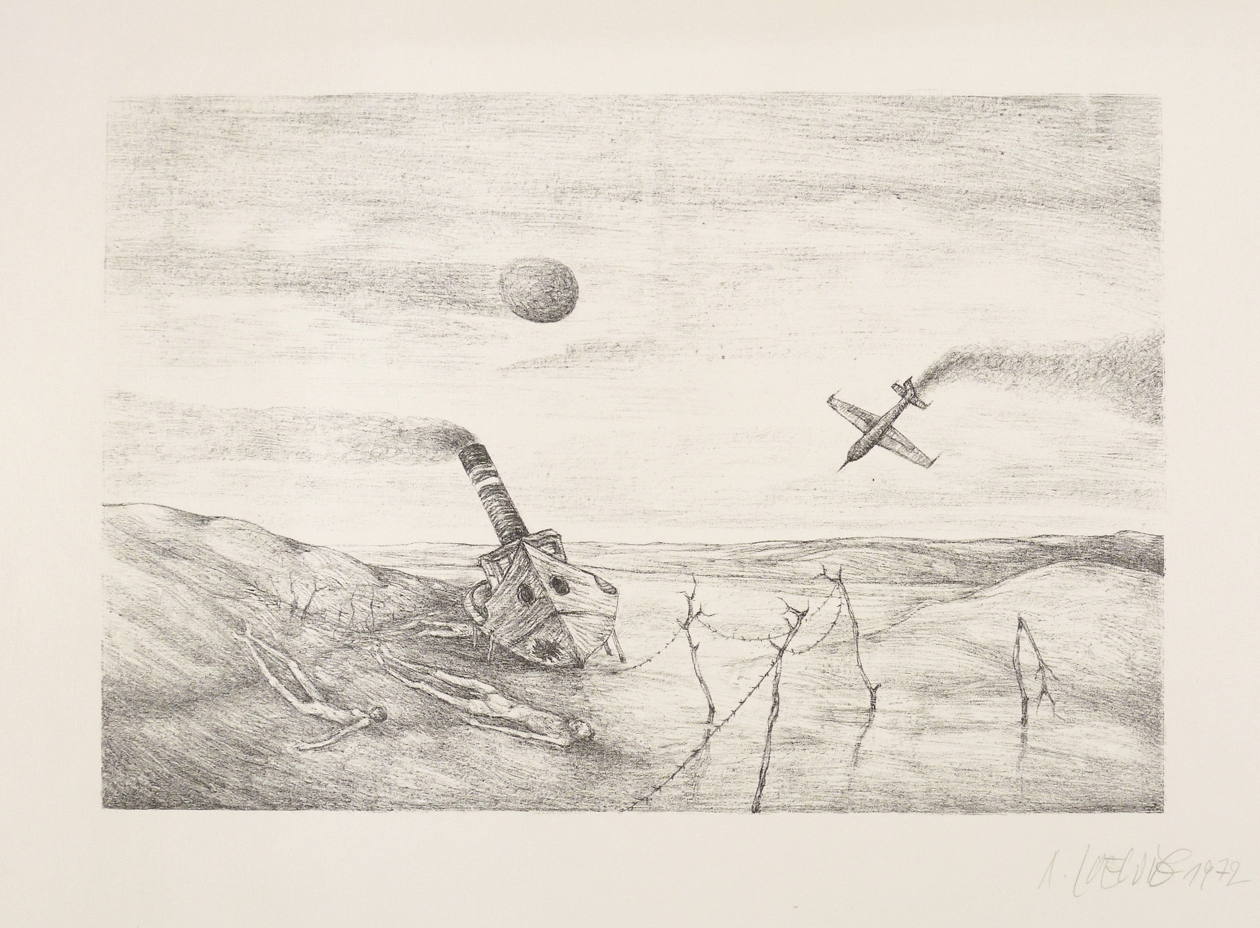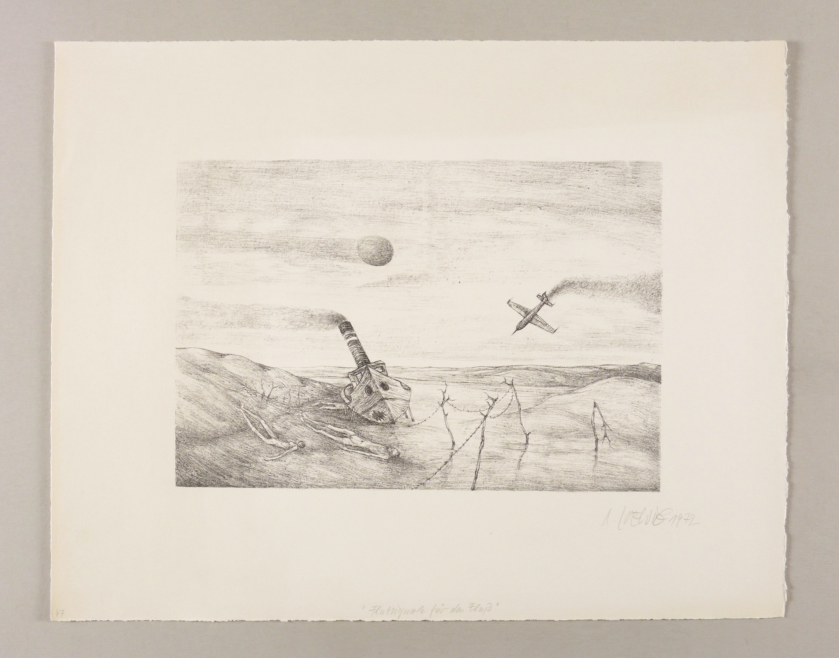 Rechts unten in Bleistift signiert und datiert: ″R. LOEWIG 1972″. Im unteren Blattrand Titel: ″Flutsignale für den Fluß″. Wasserzeichen der Papiermühle. – Sehr guter Zustand.
