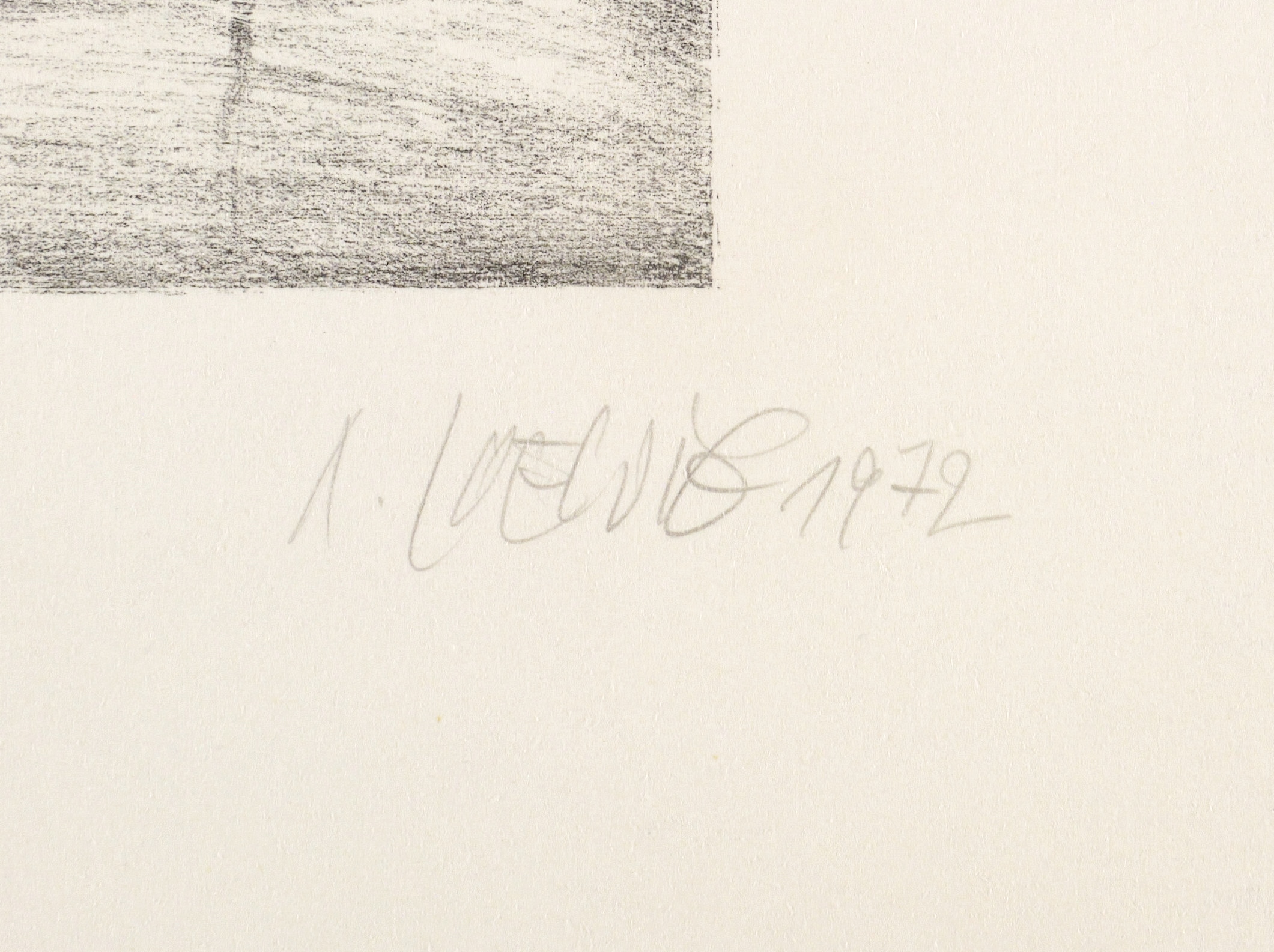 1972. Lithografie / Kreidelithografie, in Schwarz, auf festem hellchamois BFK Rives France. – Originale Künstlergrafik, von Roger Loewig. – Auflage 50 Exemplare. – 22,7 x 33,3 cm (Darstellung / Druckbild), 40 x 51 cm (Blatt).