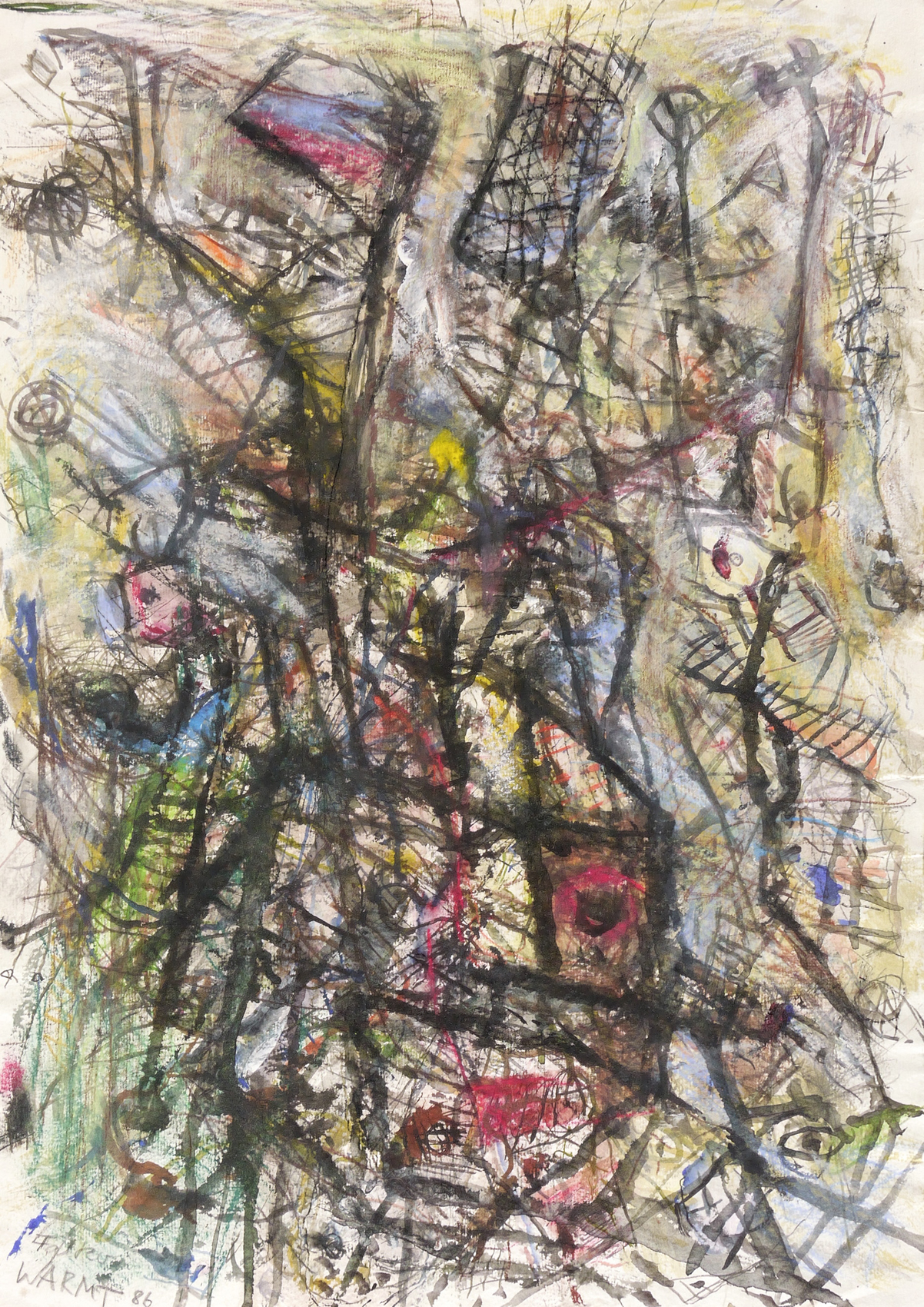 1986. Mischtechnik / Aquarell, Tusche, Farbkreide & Graphit, auf weißem Aquarellbütten. – Originale Künstlergrafik, von Falko Warmt. – Unikat. – 59,0 x 42,0 cm (Darstellung / Blatt).