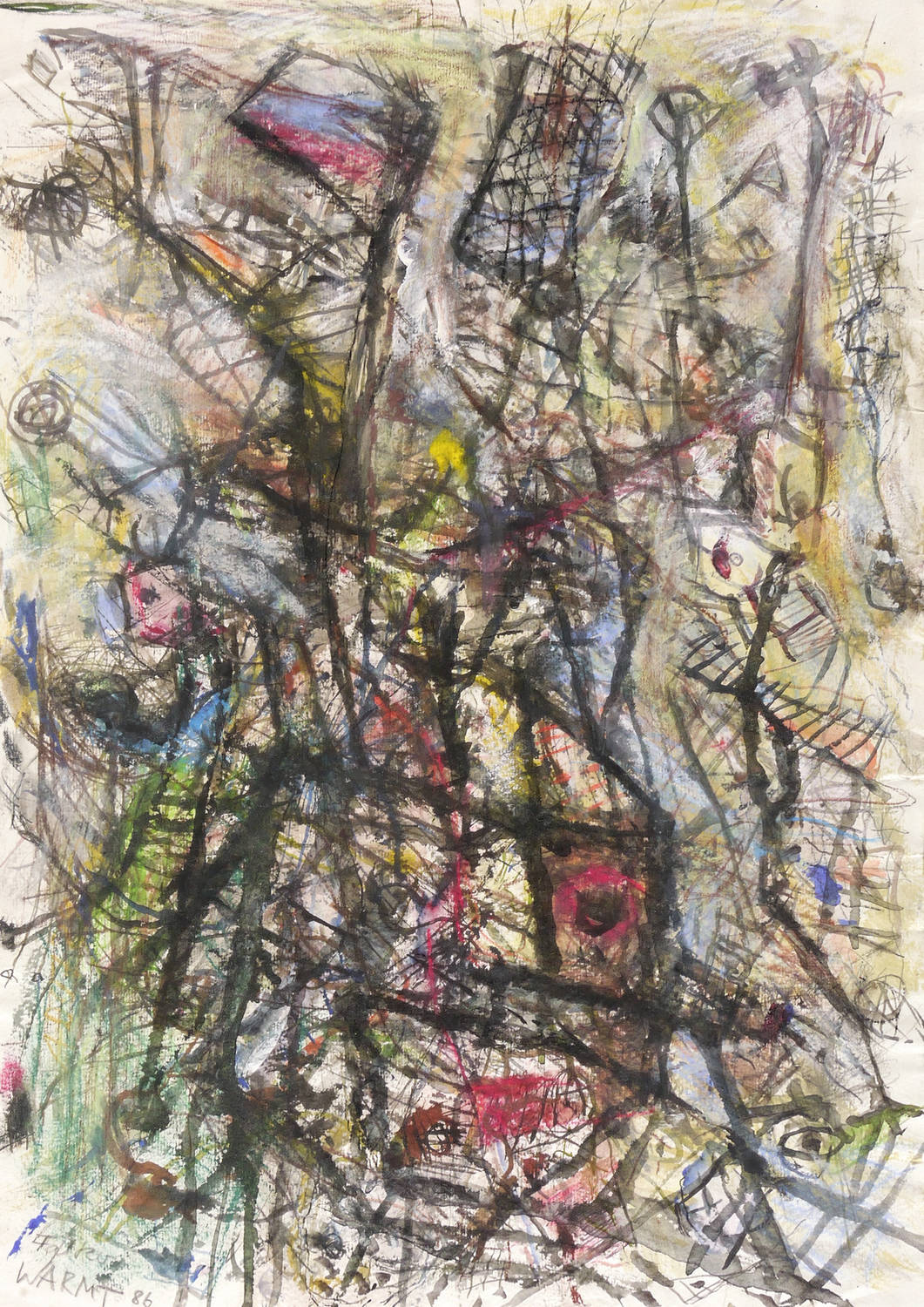 Links unten in Graphit signiert und datiert: ″Falko WARMT 86″. Verso Titel: ″Signal Gebilde″. – Sehr guter Zustand.