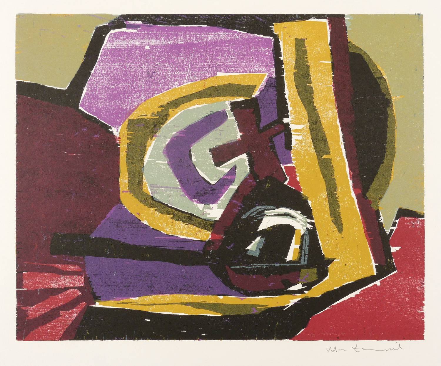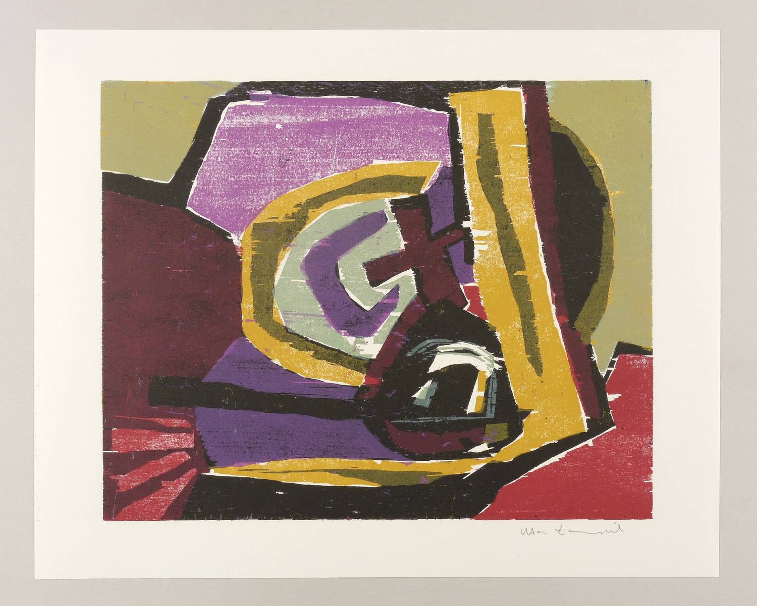 1992. Farbholzschnitt, in 5 Farben, auf weißem Werkdruck. – Originale Künstlergrafik, von Uta Zaumseil. – 36,2 x 45,0 cm (Darstellung / Druckstock), 45 x 57 cm (Blatt).