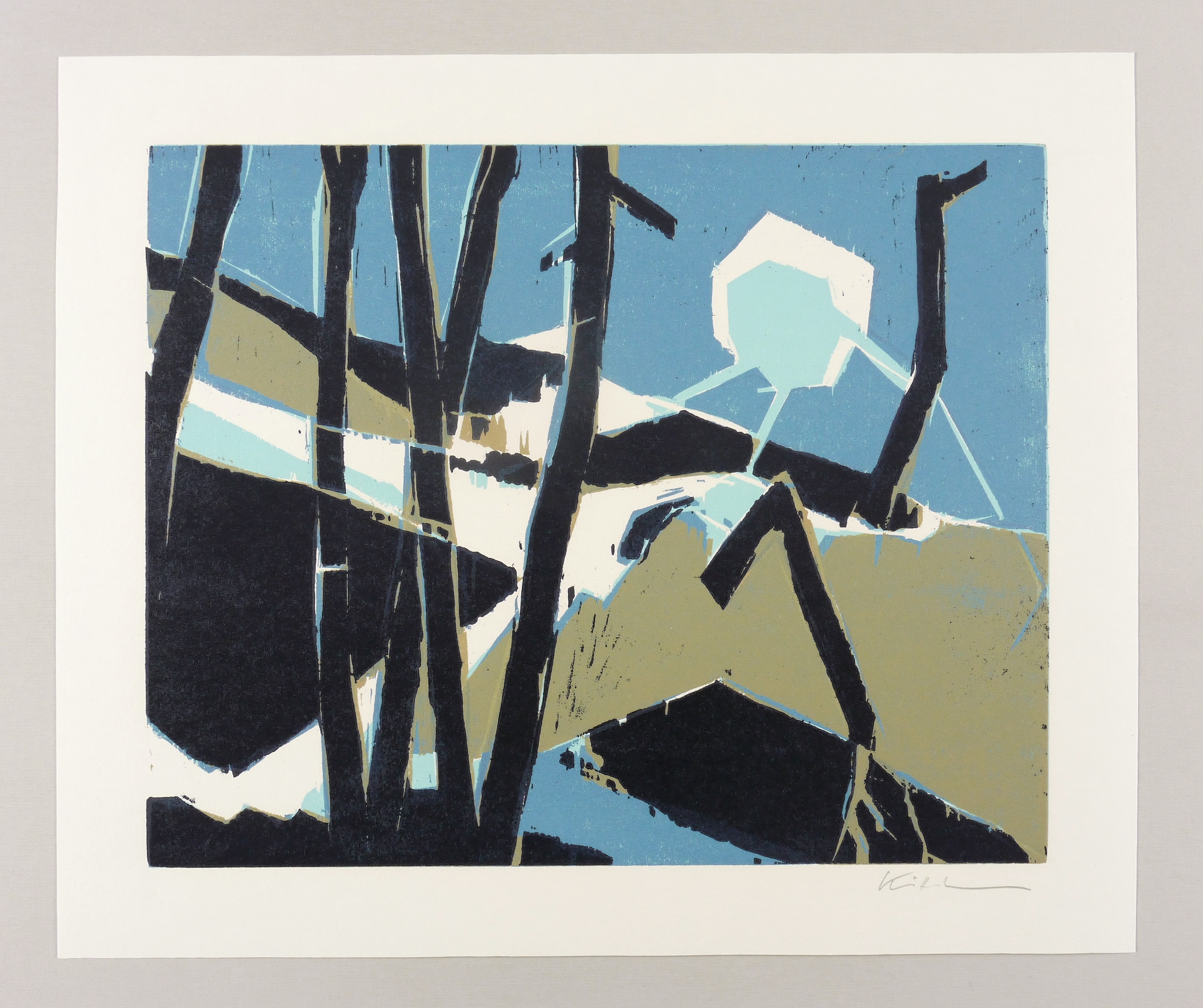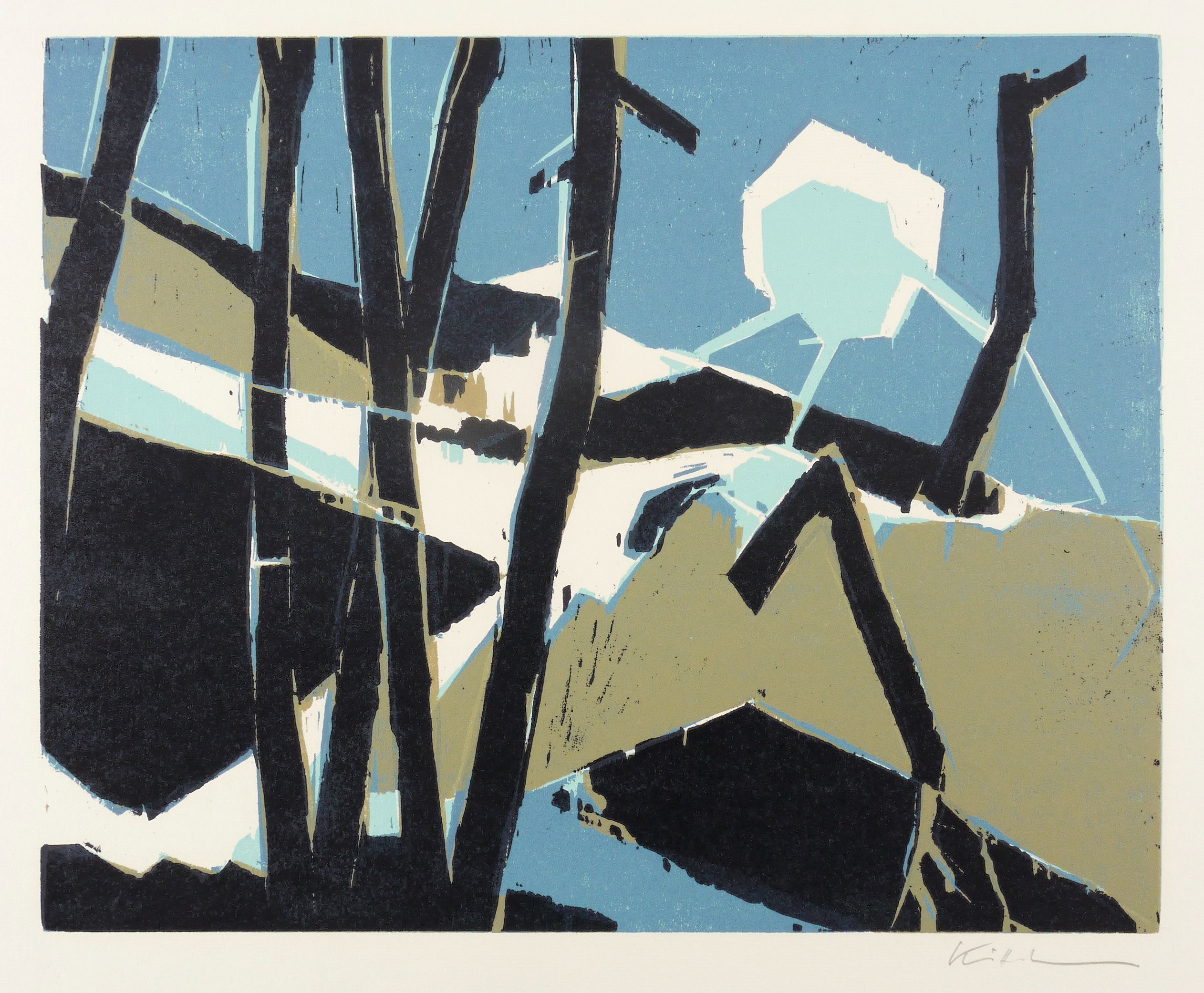 1990-1995. Farbholzschnitt, in 4 Farben, auf weißem Werkdruck. – Originale Künstlergrafik, von Lothar Kittelmann. – 36,1 x 45,1 cm (Darstellung / Druckbild), 46 x 54 cm (Blatt).