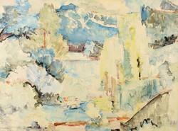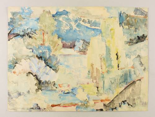 Um 1970. Aquarell, auf hellgelbem Aquarellkarton. – Originale Künstlergrafik, von Georg Nerlich. – Unikat. – 46,8 x 62,8 cm (Darstellung / Blatt).