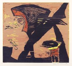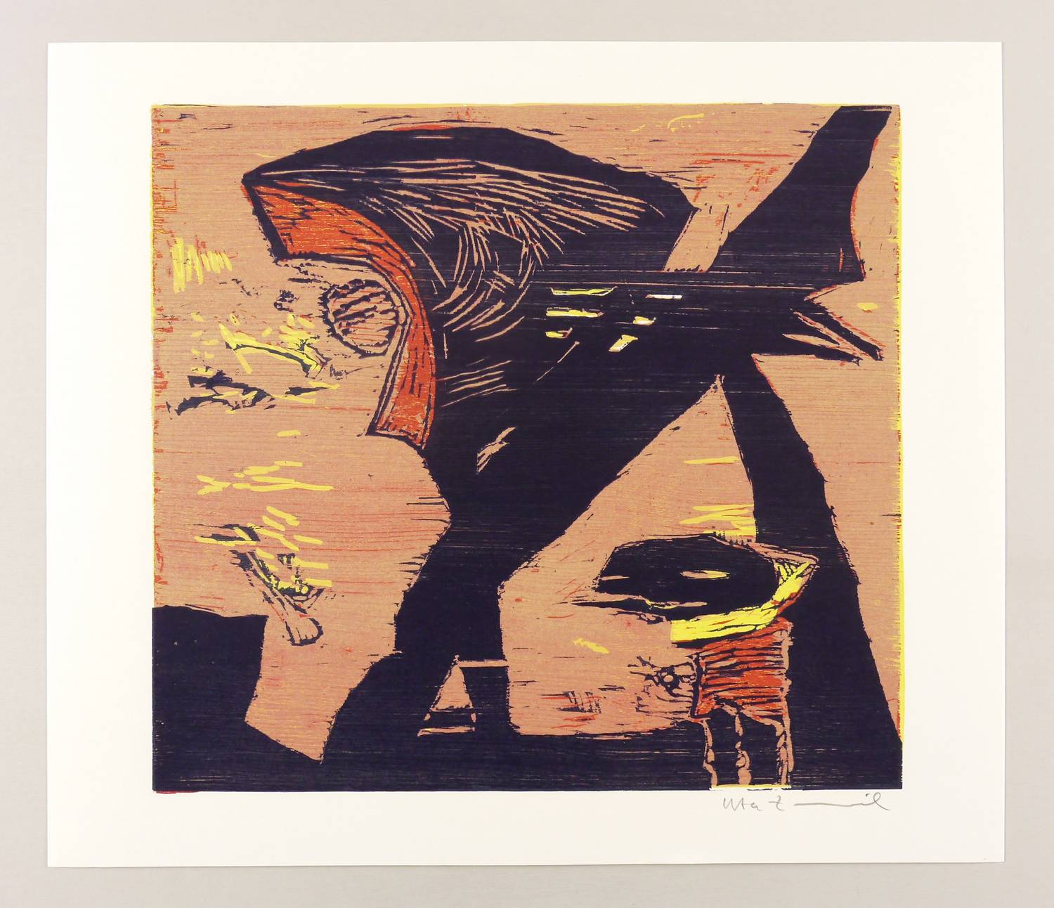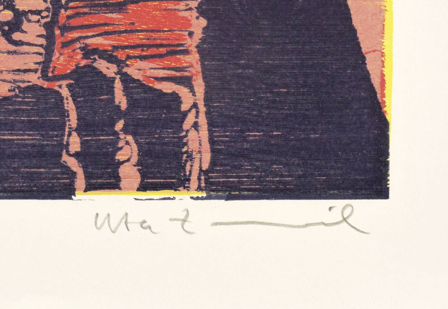 1994. Farbholzschnitt, in 5 Farben, auf weißem Werkdruck. – Originale Künstlergrafik, von Uta Zaumseil. – 40,2 x 43,5 cm (Darstellung / Druckstock), 48 x 56 cm (Blatt).