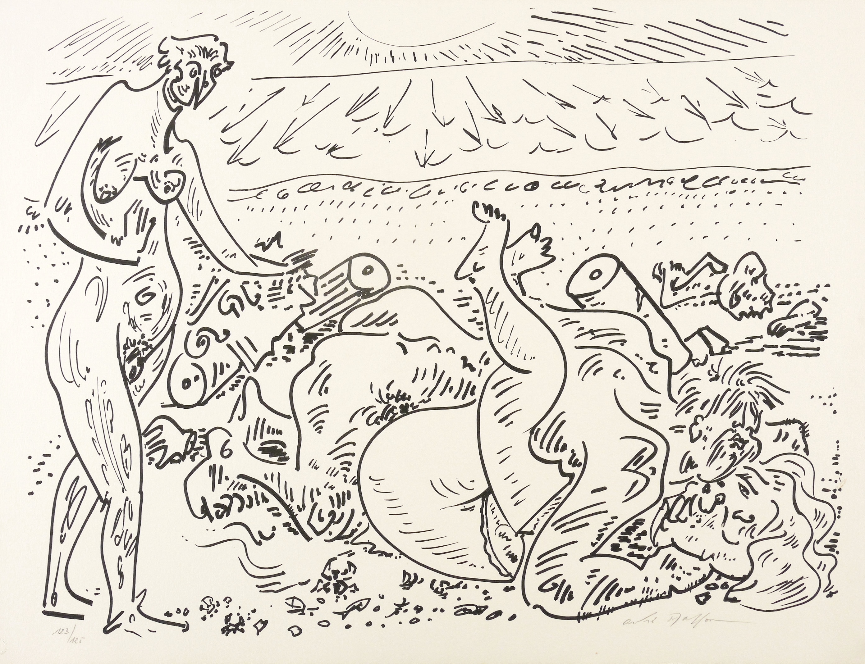Rechts unten in Bleistift signiert: ″Andre Masson″. Links Auflagenbezeichnung: ″123/125″. Trockenstempel: ″ATELIER ANDRE MASSON″. – Sehr guter Zustand.