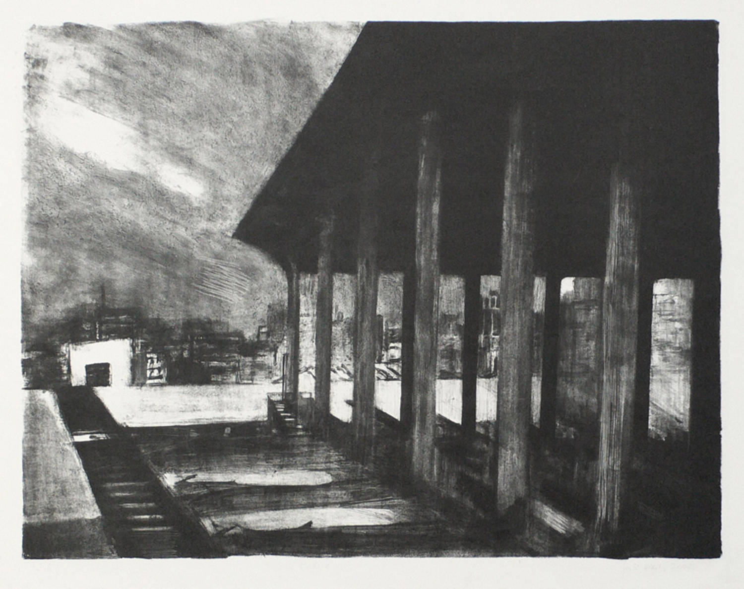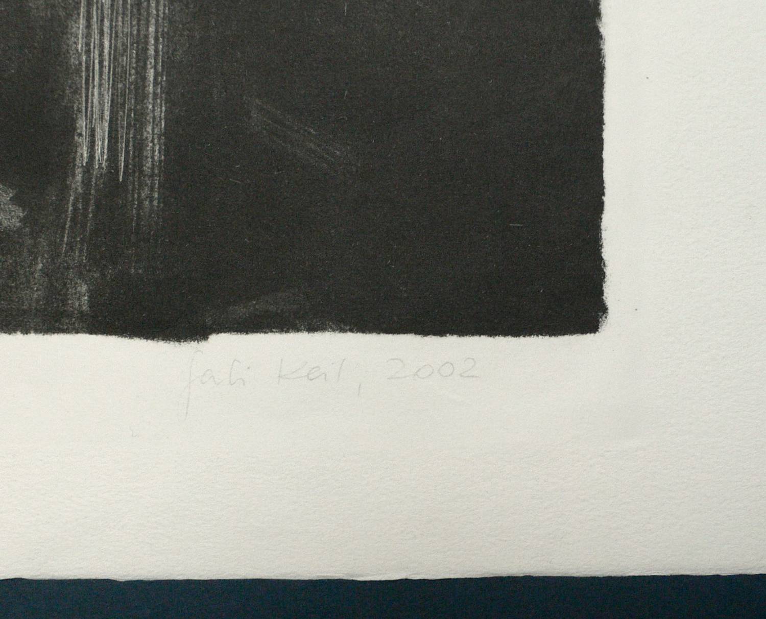 2002. Lithografie / Kreidelithografie, in Schwarz, auf Hahnemühle-Büttenpapier. – Originale Künstlergrafik, von Gabi Keil. – Auflage Exemplar Nr. 3/6. – 45,5 x 58,5 cm (Darstellung), 53 x 70 cm (Blatt).